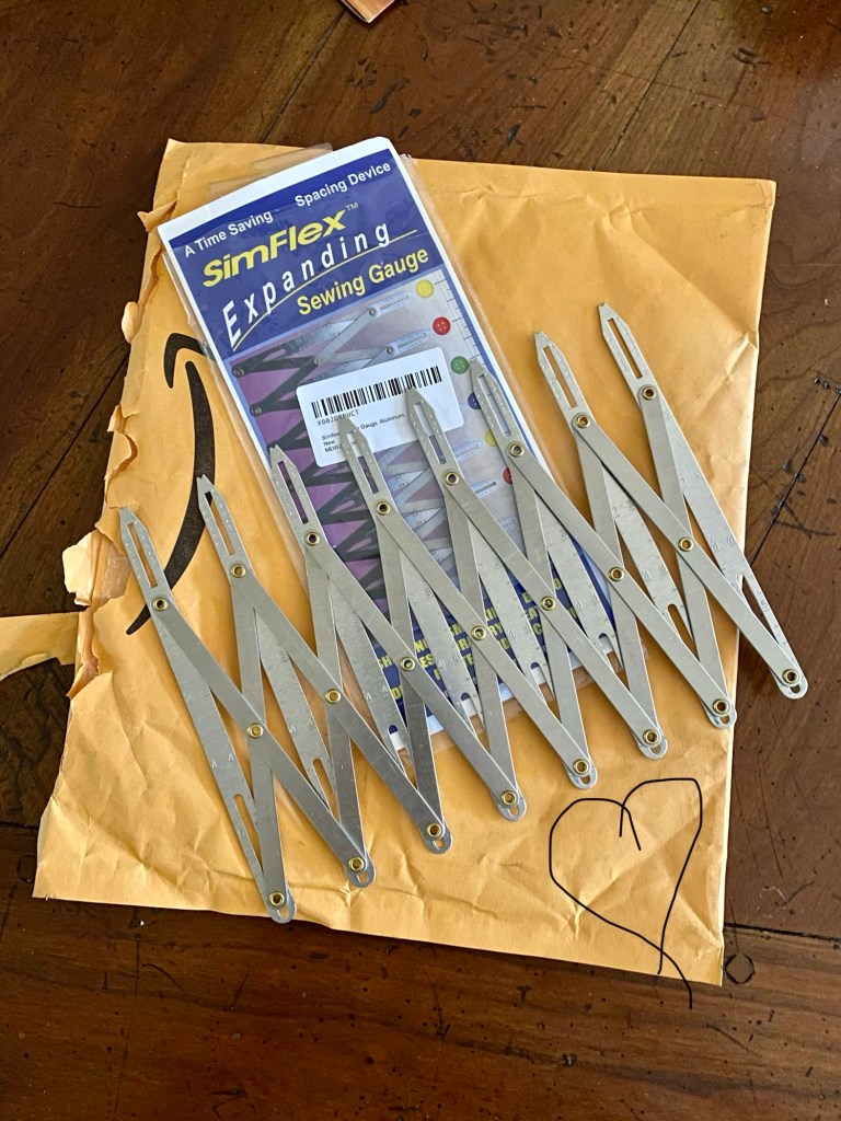 Donc, à ne pas regarder de trop près car je l’avoue, j’ai été « feignasse » et je n’ai pas osé découdre celles-ci de peur d’abimer mon beau tissu. Parlant pose de boutons… J’ai demandé pour mon anniversaire qui est en septembre, un outil que je risque d’apprécier! Une jauge de couturière, grâce à ma fille, mes prochaines boutonnières seront tout égales, merci encore ma chouette pour ce beau cadeau fait avec distanciation!