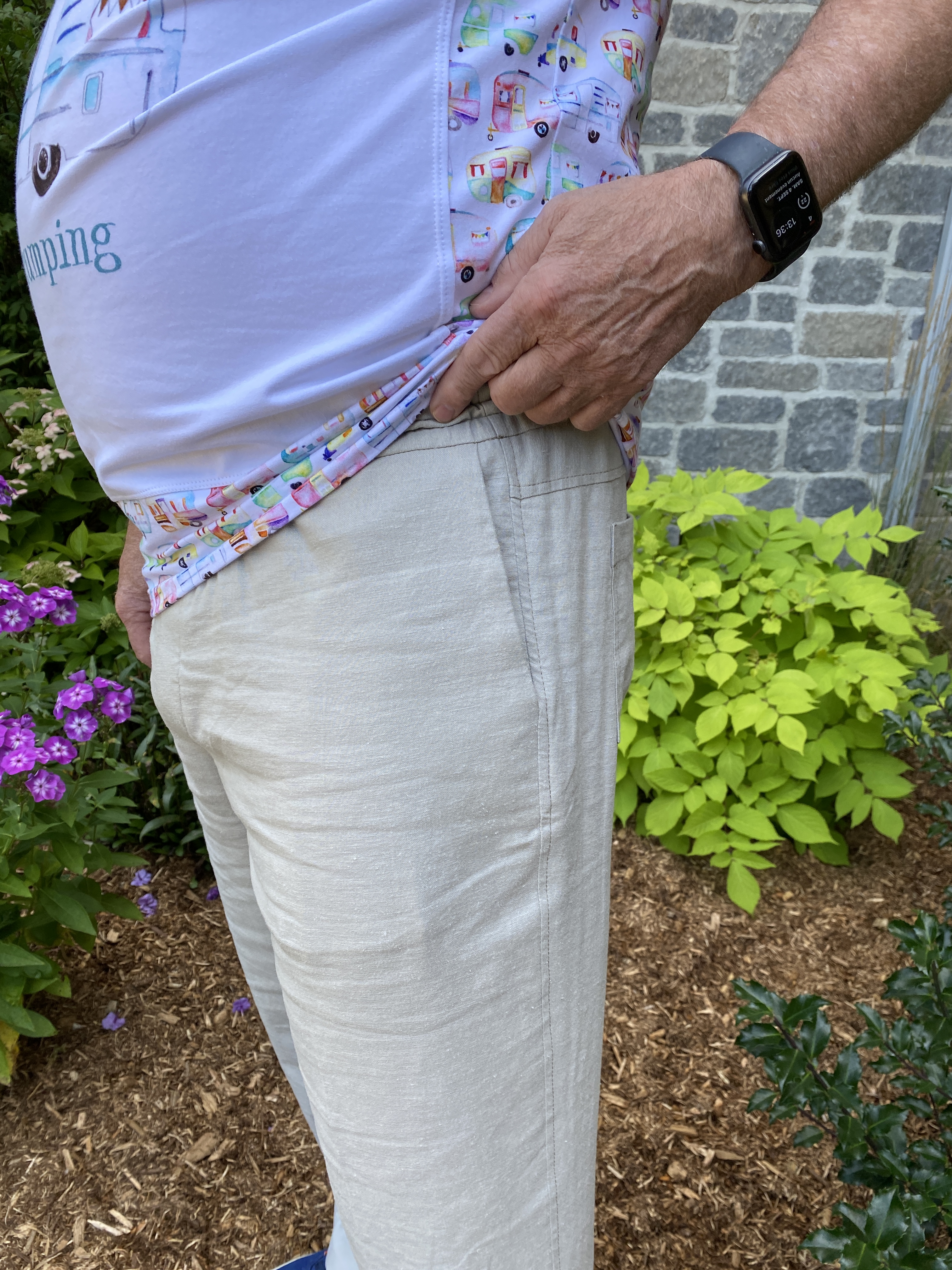 Le pantalon Men’s Summer Pants, Wardrobe By Me, j’avais 2m de Roma Strecht Lin en couleur Pumice à 16,99$/m CAD Dressew.com 135cm (54″)