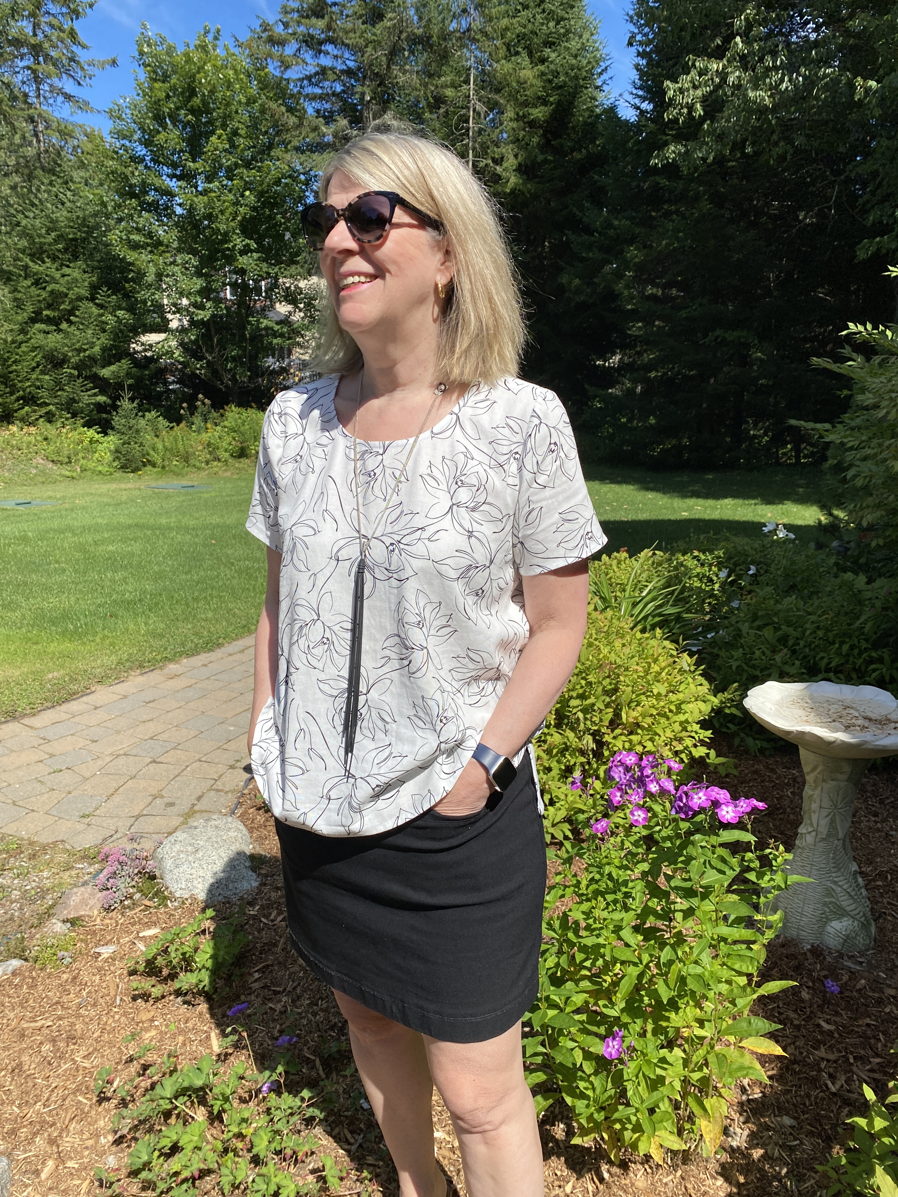 Tshirt en tissé top Scout Tee @GrainlineStudioPatterns, Lin Palma Floral Print Off white/black 1m à 12,99/m CAD