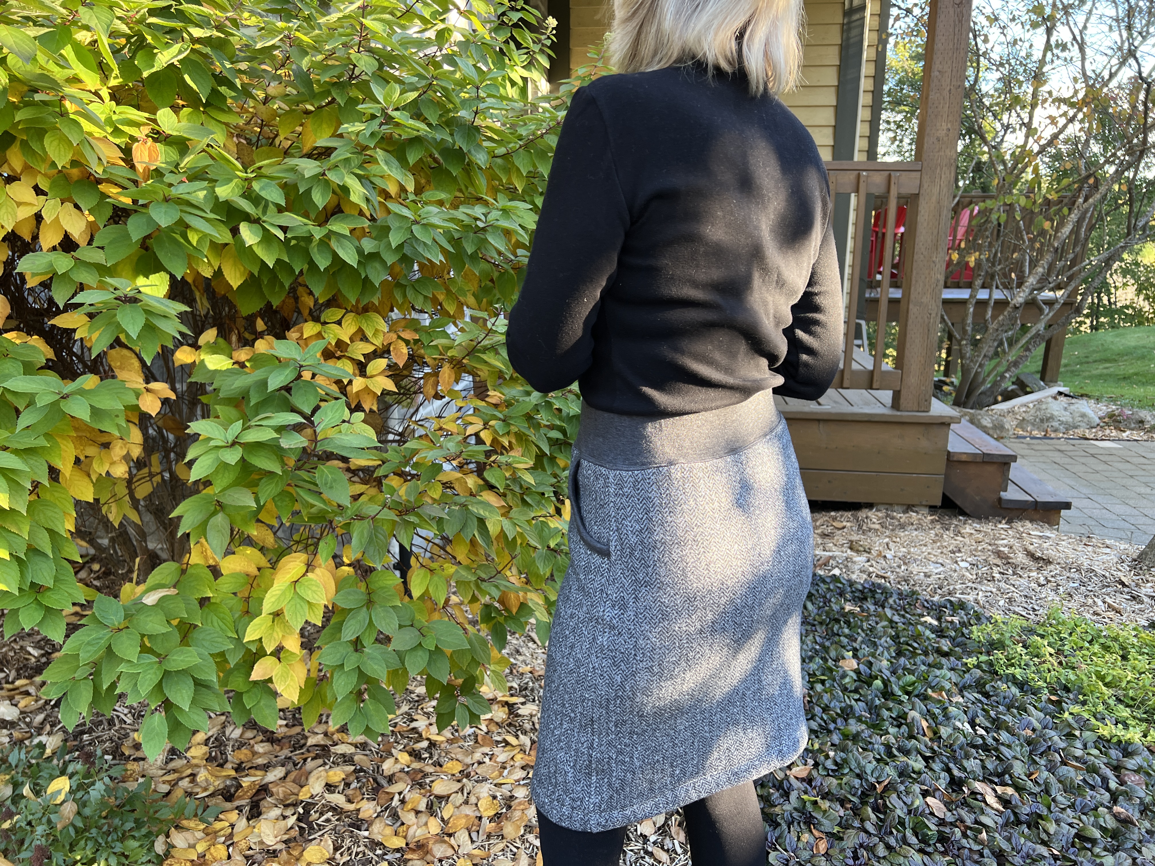 Restant d’une confection pour mon bel amour, j’ai gardé cette belle retaille en me disant cela ferait une bonne jupe chaude d’hiver! Sans avoir vraiment de patron en tête a part le traditionnel 2 rectangles et un élastique à la taille… j’ai donc mis ce projet de côté.