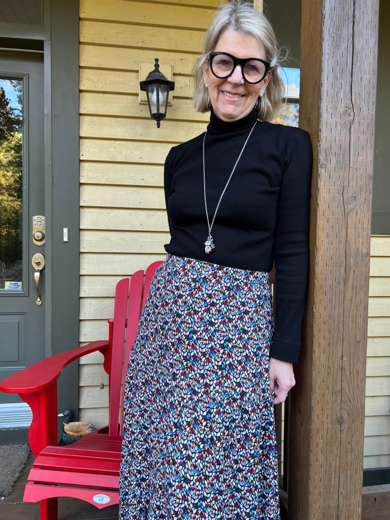 J’ai fait un col qui me gardera le cou au chaud avec le restant de tissu. Je la porte avec un de mes cols roulés Marsala que je vous ai présenter dans mes précédents articles ici.