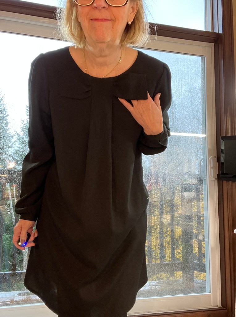 Mon papa étant décédé en décembre, j’avais acheté à la course 2 petites robes noires en tricot que je porte encore à l’occasion et pas seulement pour les visites aux salons mortuaires.