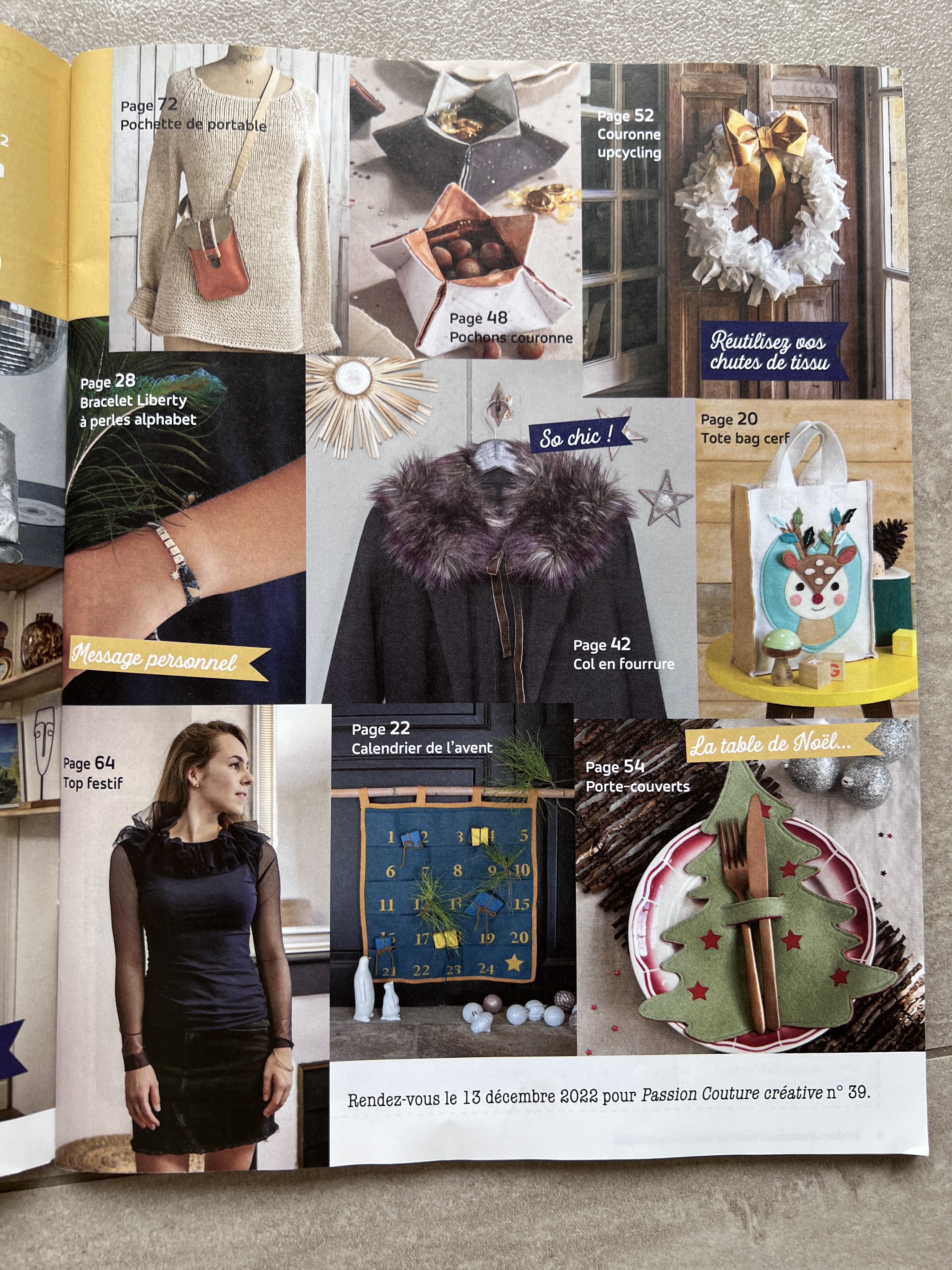 Mes préférées pour leurs contenus adaptés et actuels: Passion couture créative Hors-série des fêtes 2022 et 1er trimestre 2023 même si je n’ai pas trouvé leurs sources de patrons numériques a part des 3 premières éditions.