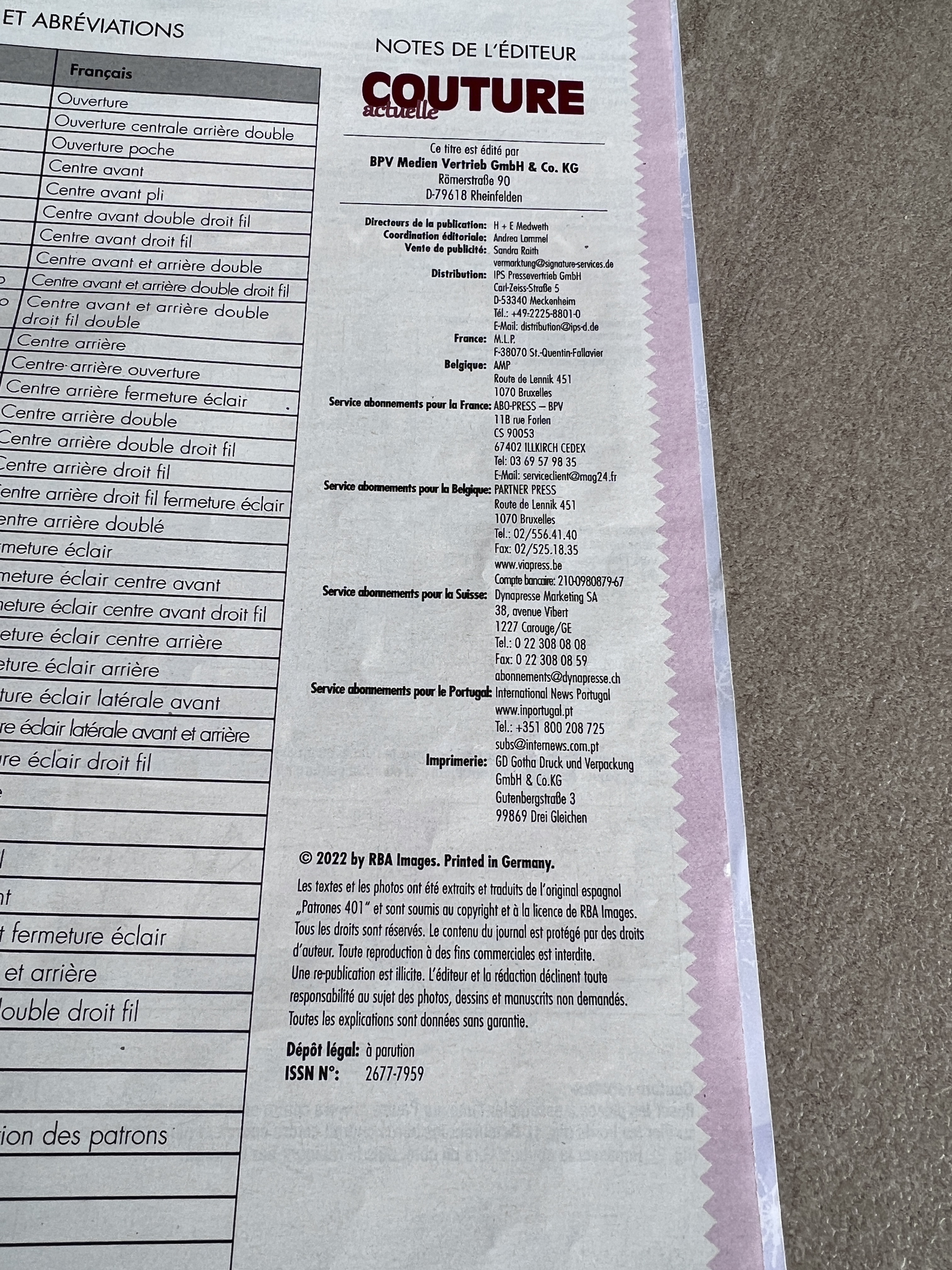 En effet, je n’avais la bonne car quelques jours plus tard, évidemment, j’ai trouvé la bonne et je vous explique qu’ils sont en effet en transition de publication en France car une autre édition que je n’achetais plus non plus est la revue Diana Couture qui elle pour ce mois-ci a repris la publication du patronne Éditions … passé de l’été dernier!