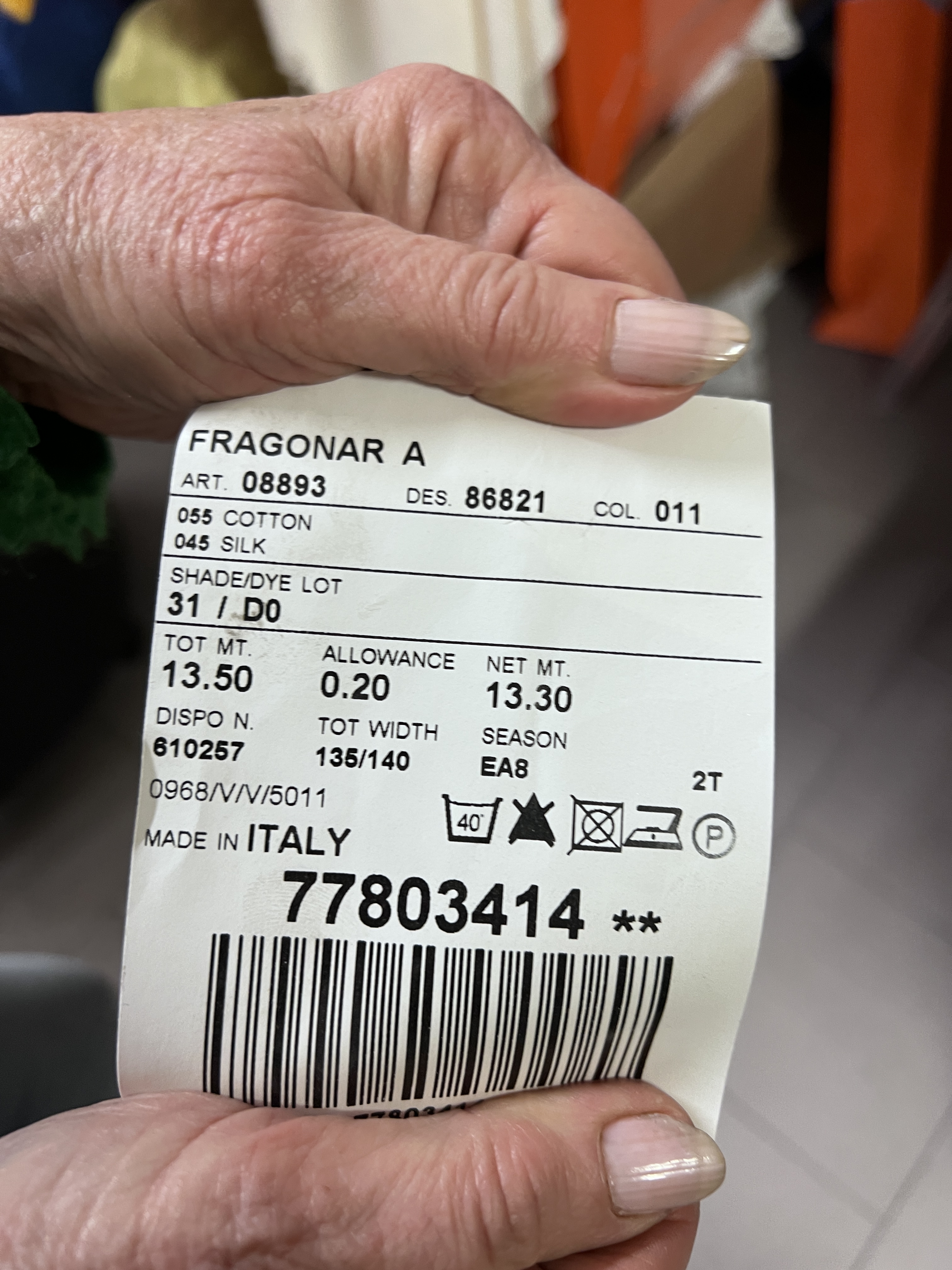 Tt mon deuxième achat fut une mélange de soie /coton à blouse en soie de Fragonard (MIR), 55% CO 45% SE