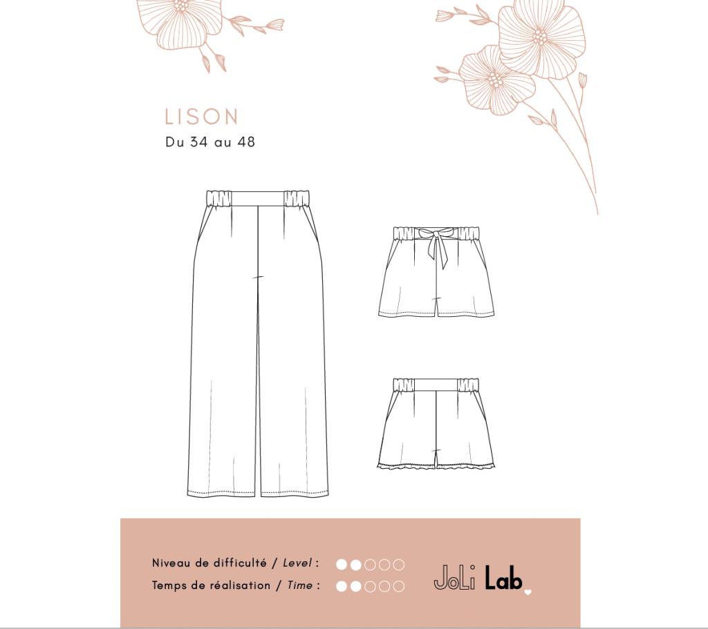 J’ai choisi de faire la version short avec volants. J’ai épluché les réseaux sociaux pour lire les avis sur ce patron et examiner les images pour voir le résultat final et porté. Je trouvais le volant trop mince en hauteur, j’avais en tête le volant du short Marius un peu plus long. J’ai donc rallongé celui-ci de 3 cm. Ensuite, au cas où je n’aimerais pas le style avec volants, j’ai allongé le short à la longueur que je préfère les porter habituellement et ce, a partir de la ligne de coupe suggéré sur le partie patron du pantalon.