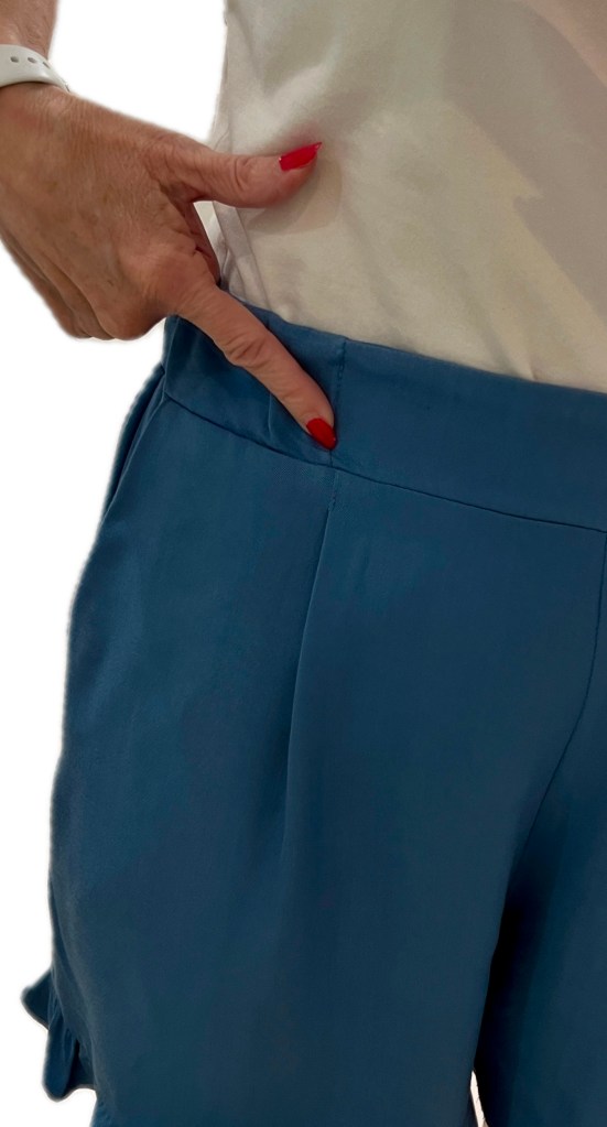Je vais donc re-décalquer ce patron en 36 car les points forts sont la bande devant qui permet un effet ventre plat, les grandes poches, le confort de la bande élastique au dos et l’originalité du model. A suivre, évidement dans mon prochain journal créatif. 😅
