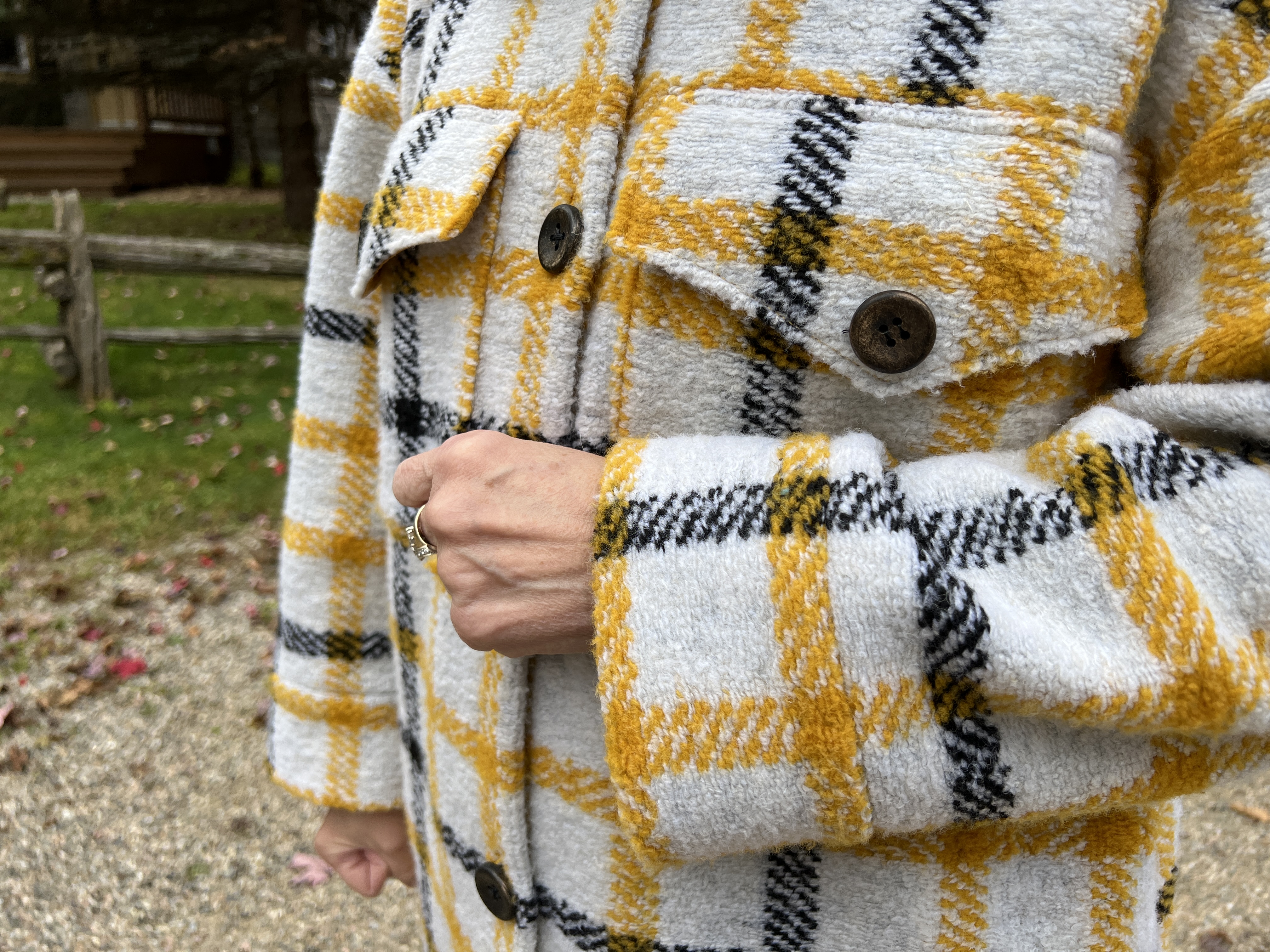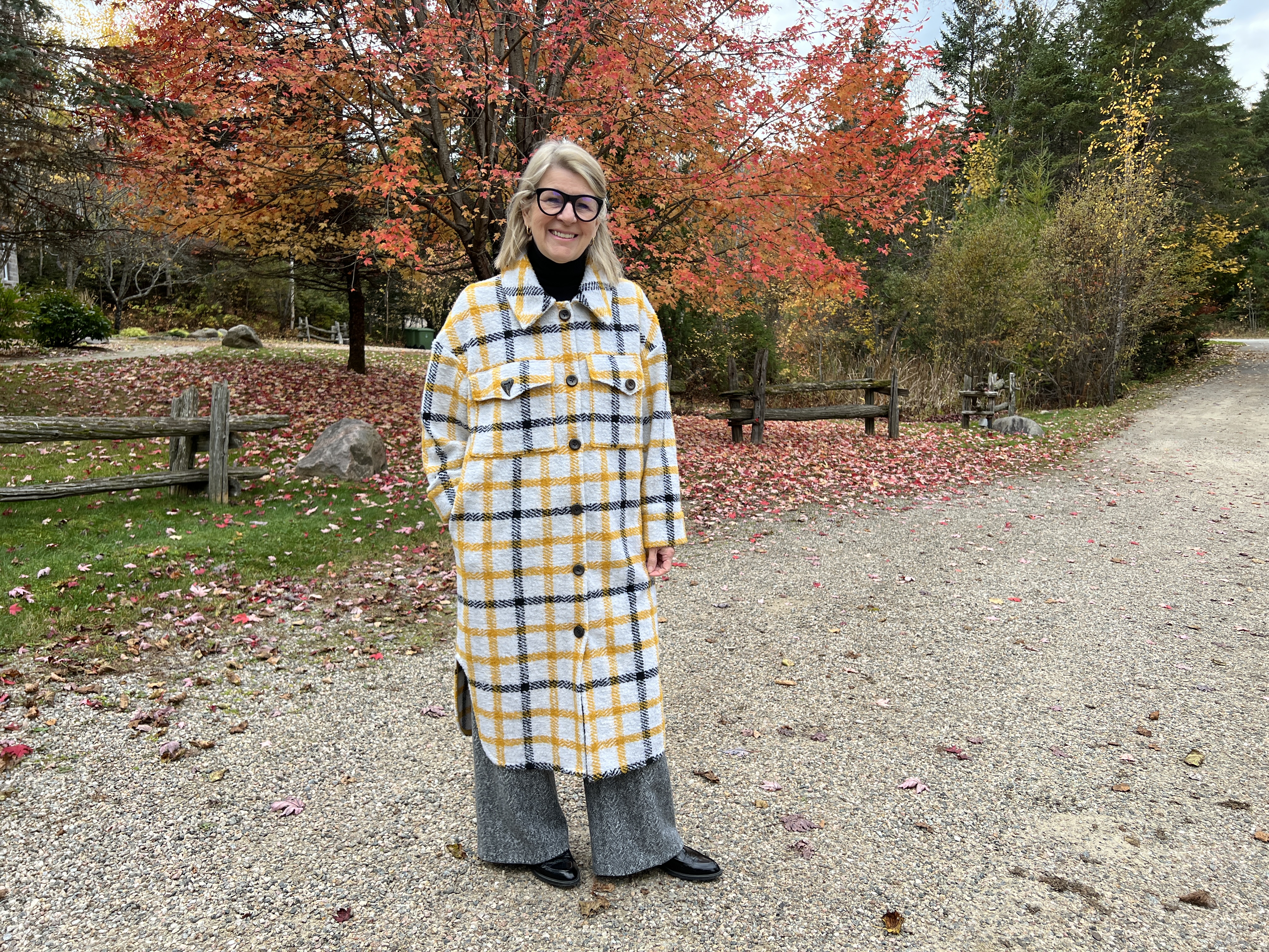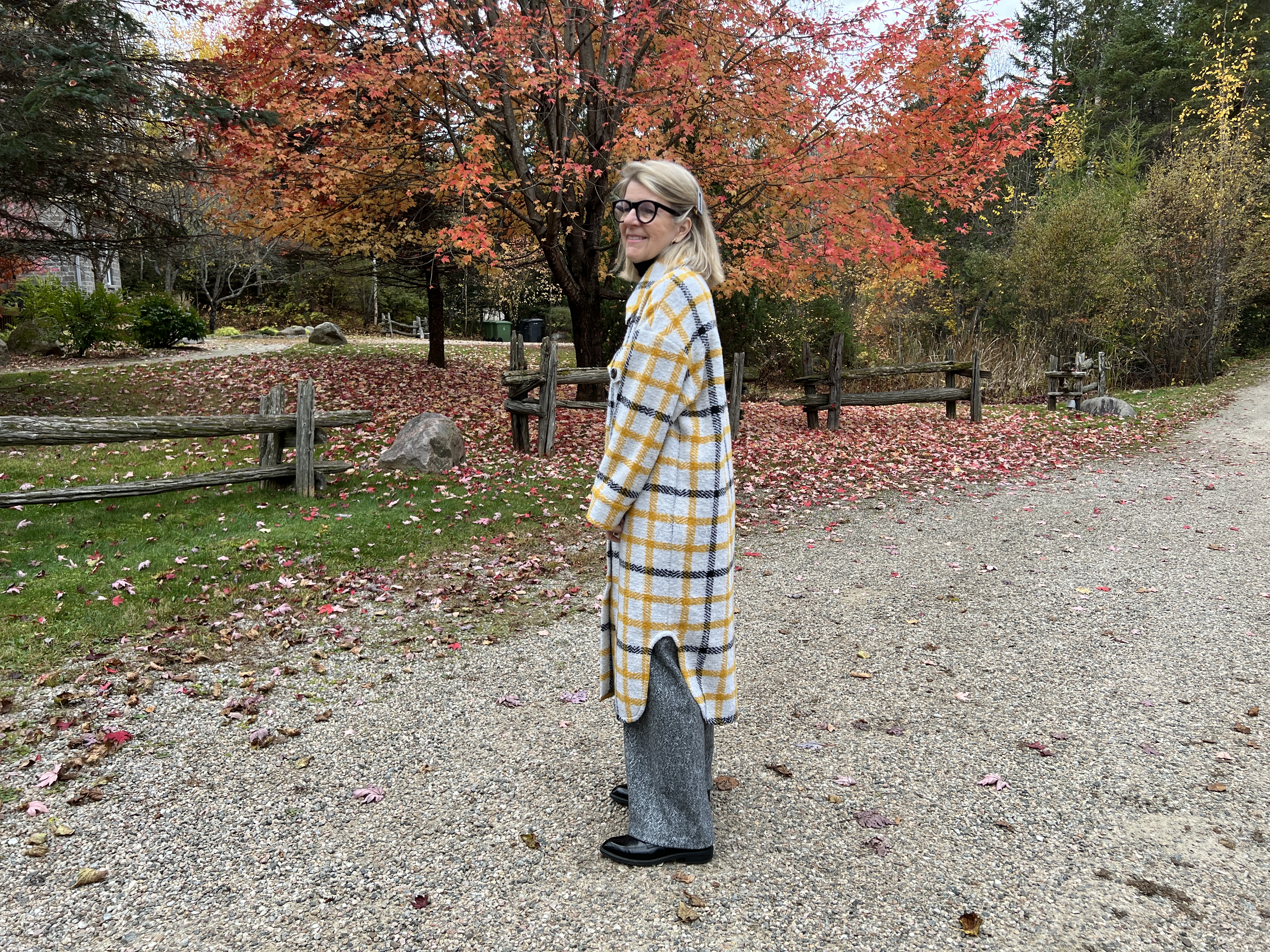 J’y vais fort en débutant avec un manteau mi-saison! Style chemise trop grande et couleur qui ne passe pas inaperçu. J’ai l’impression que j’affirme mon style en parallèle de ma personnalité! 😅