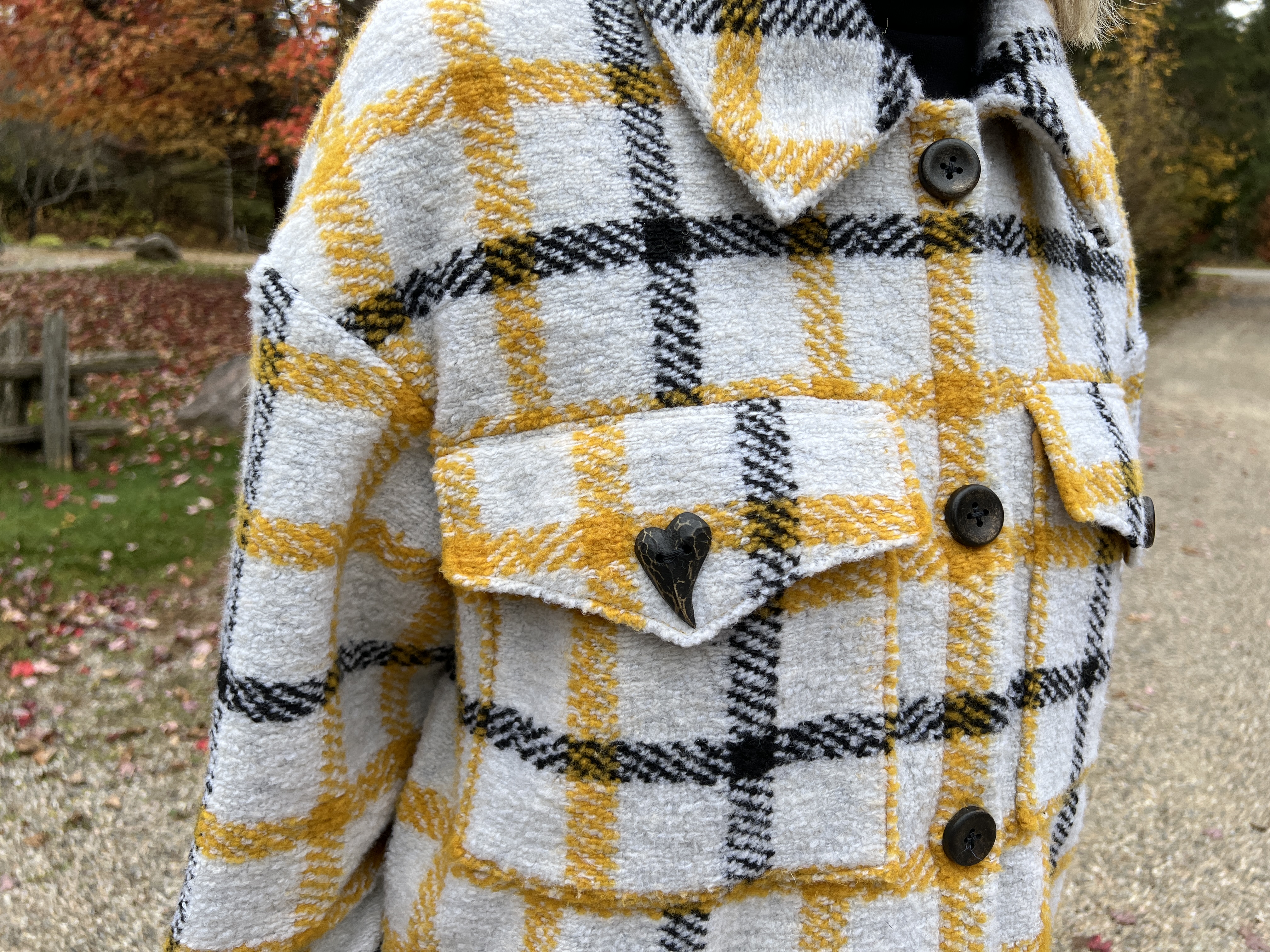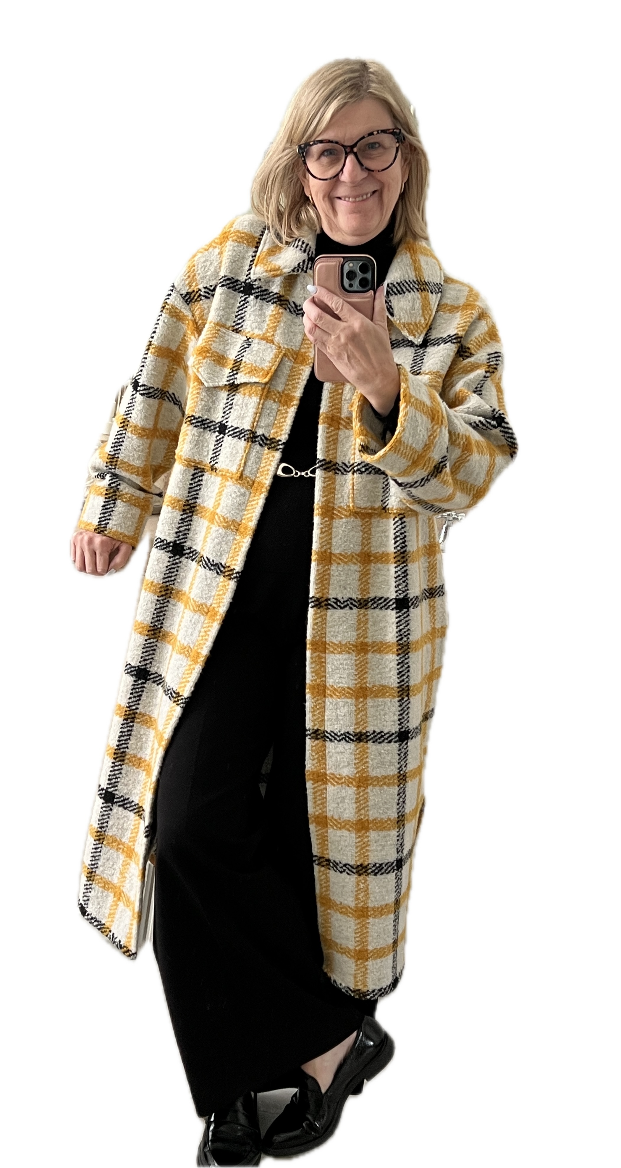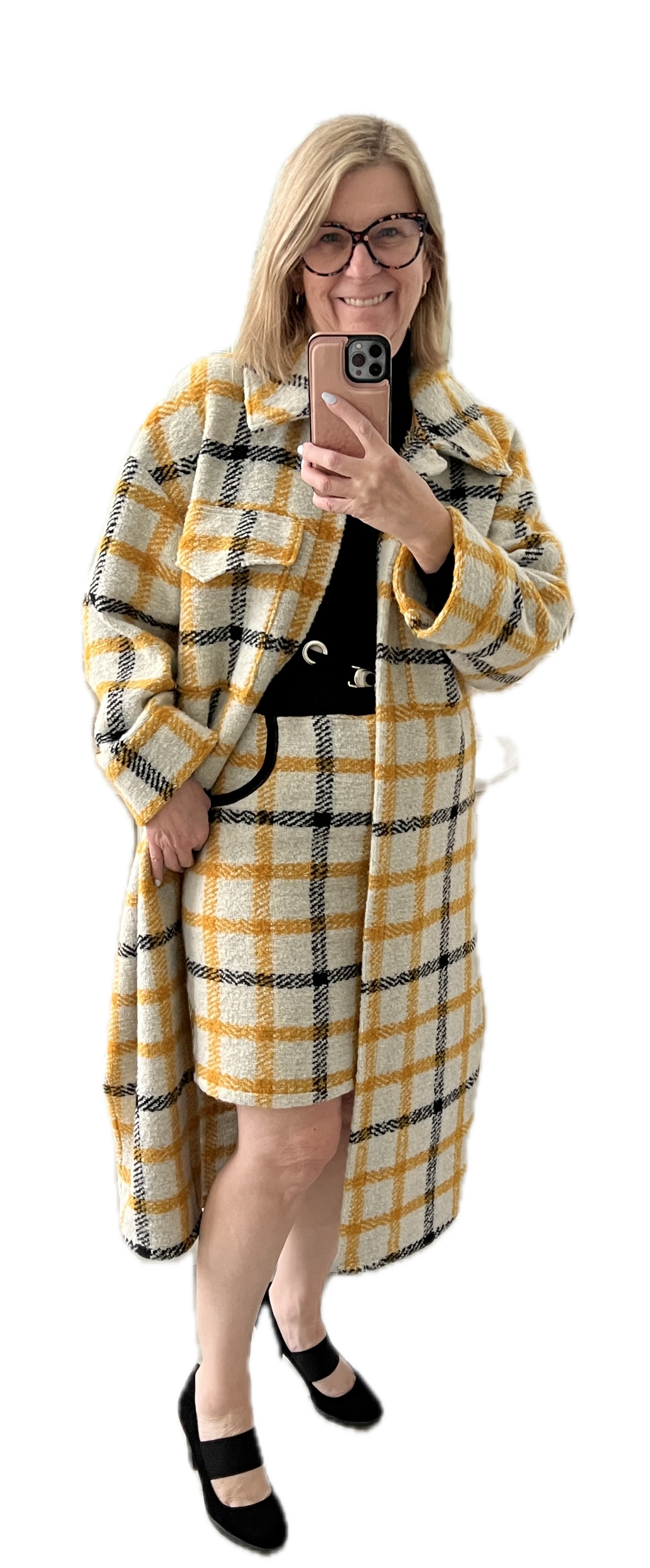 J’y vais fort en débutant avec un manteau mi-saison! Style chemise trop grande et couleur qui ne passe pas inaperçu. J’ai l’impression que j’affirme mon style en parallèle de ma personnalité! 😅