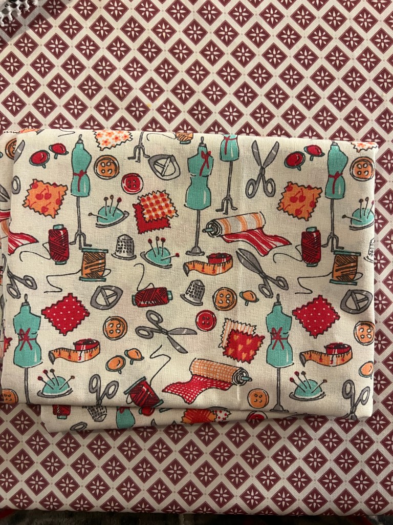 Coton « Cretonne » avec motifs de d’accessoires de couture, trop mignon!
