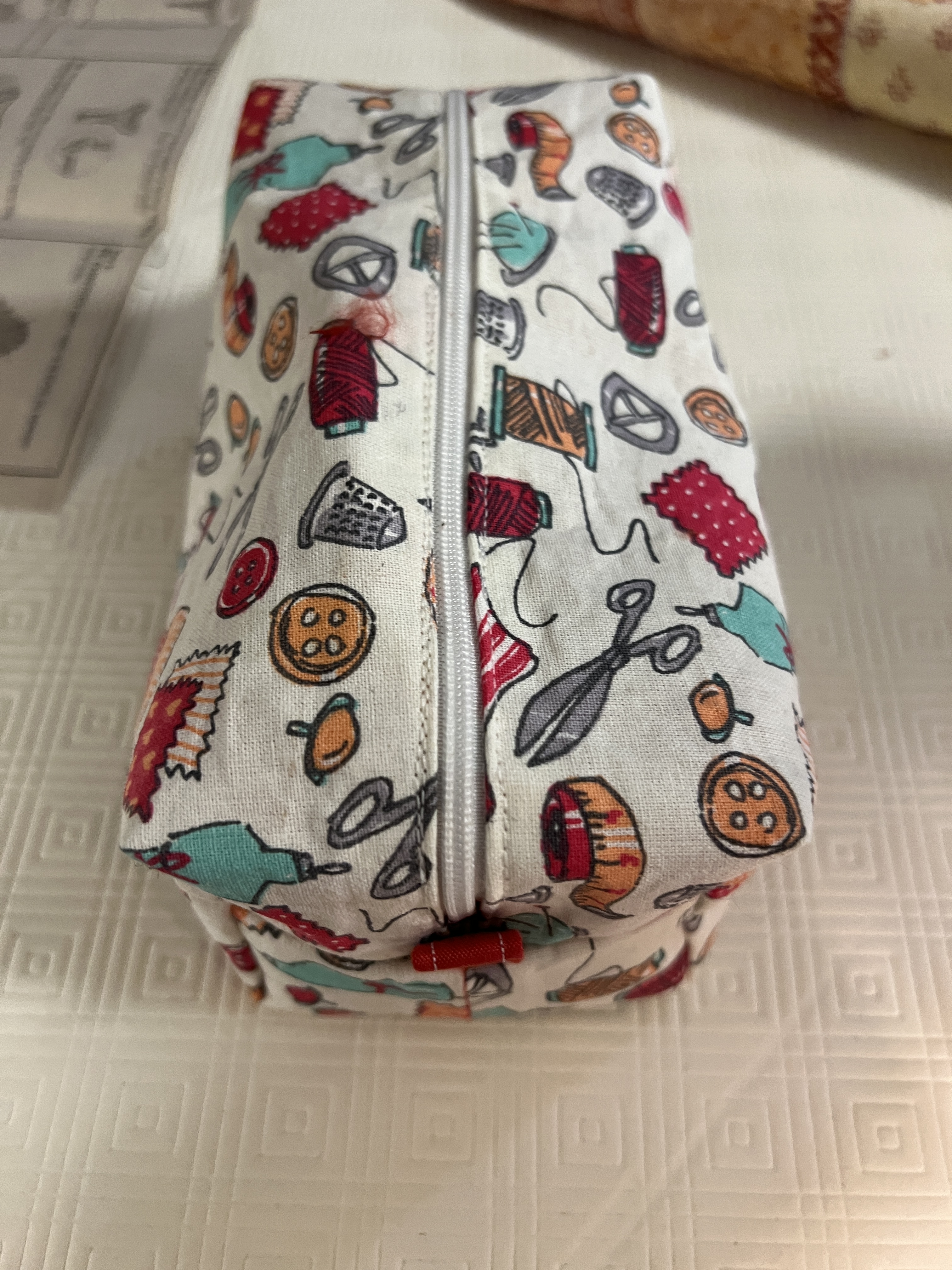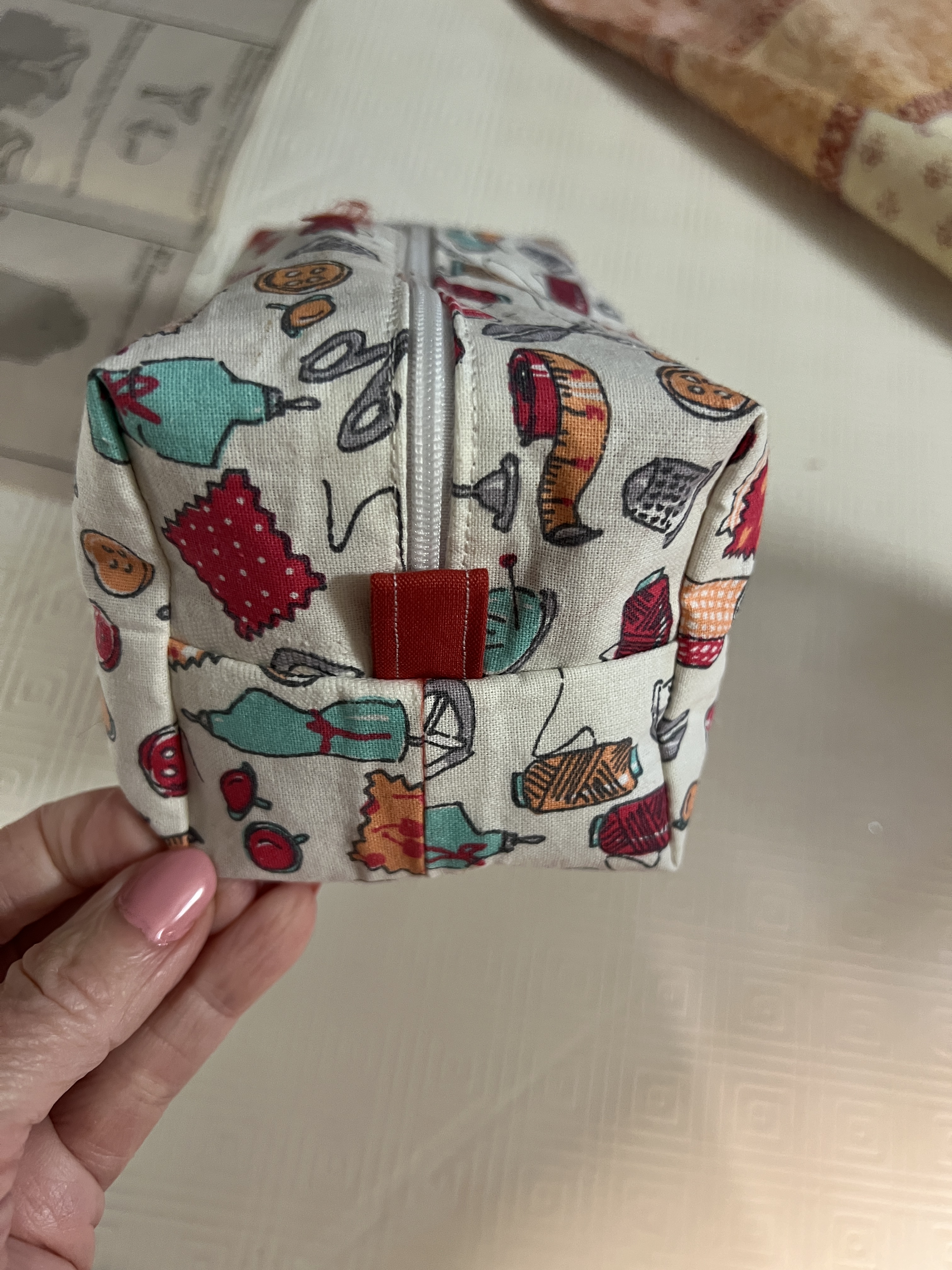 J’ai repris grâce à elle, le goût à la fabrication d’accessoires avec cette petite trousse toute mignonne qui me sera utile pour transporter mes petits accessoires couture. Carole me fit connaître sur youTube une asiatique qui fait des tutos très imagés et faciles à comprendre. Voici le lien: How to sew a zipper box pouch
