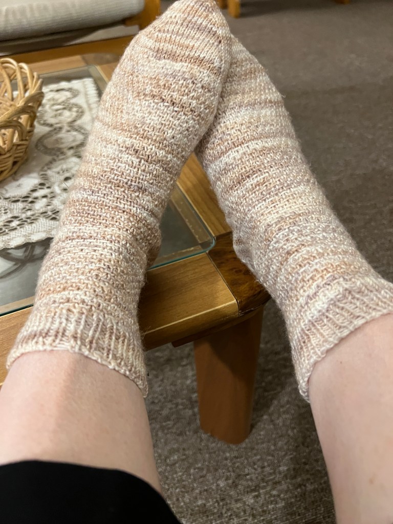 Je les porte beaucoup depuis, car très confortables pour nos grandes sorties à pied. J’adore la couleur et de nouvelles sont déjà sur mes aiguilles.