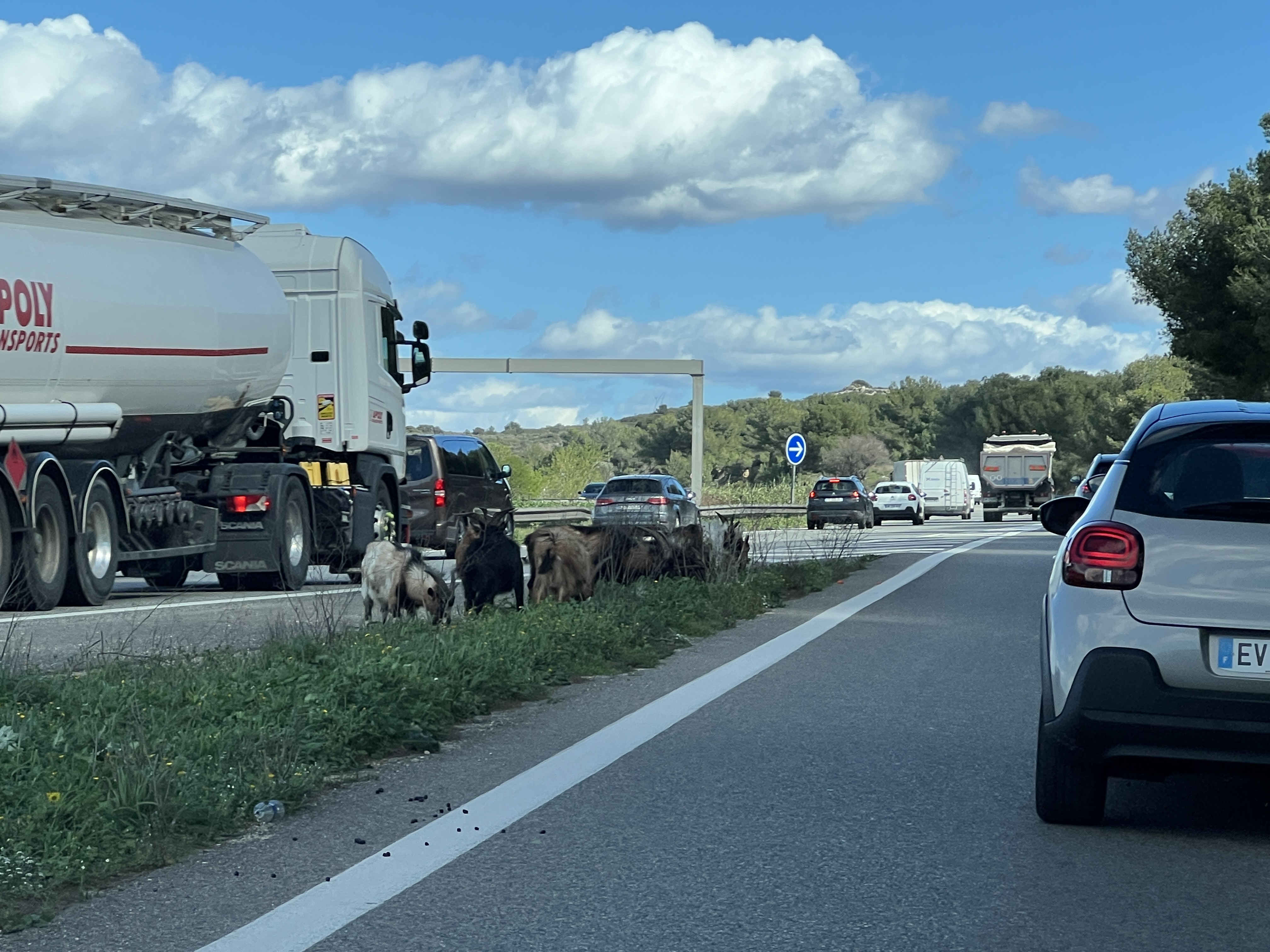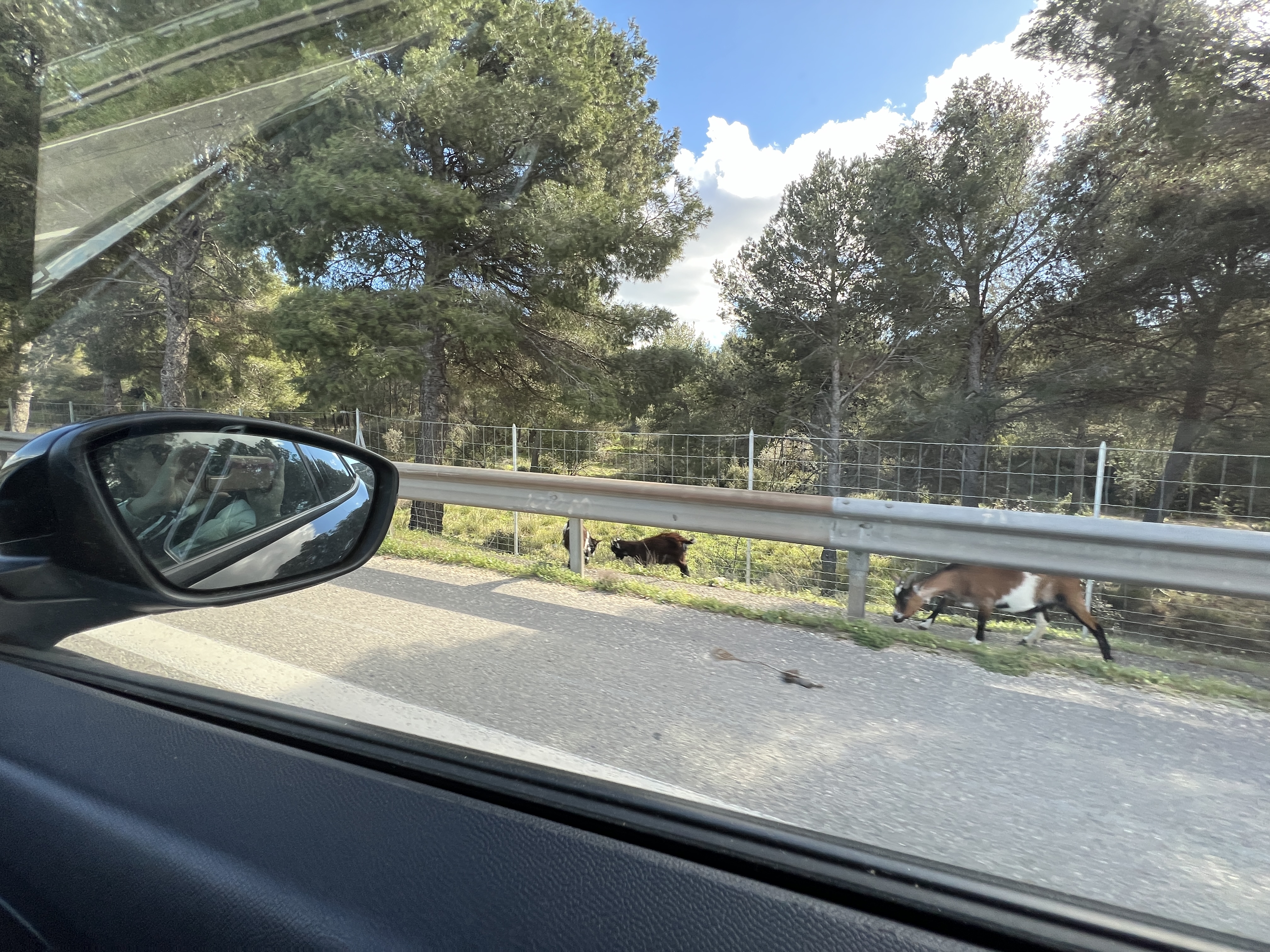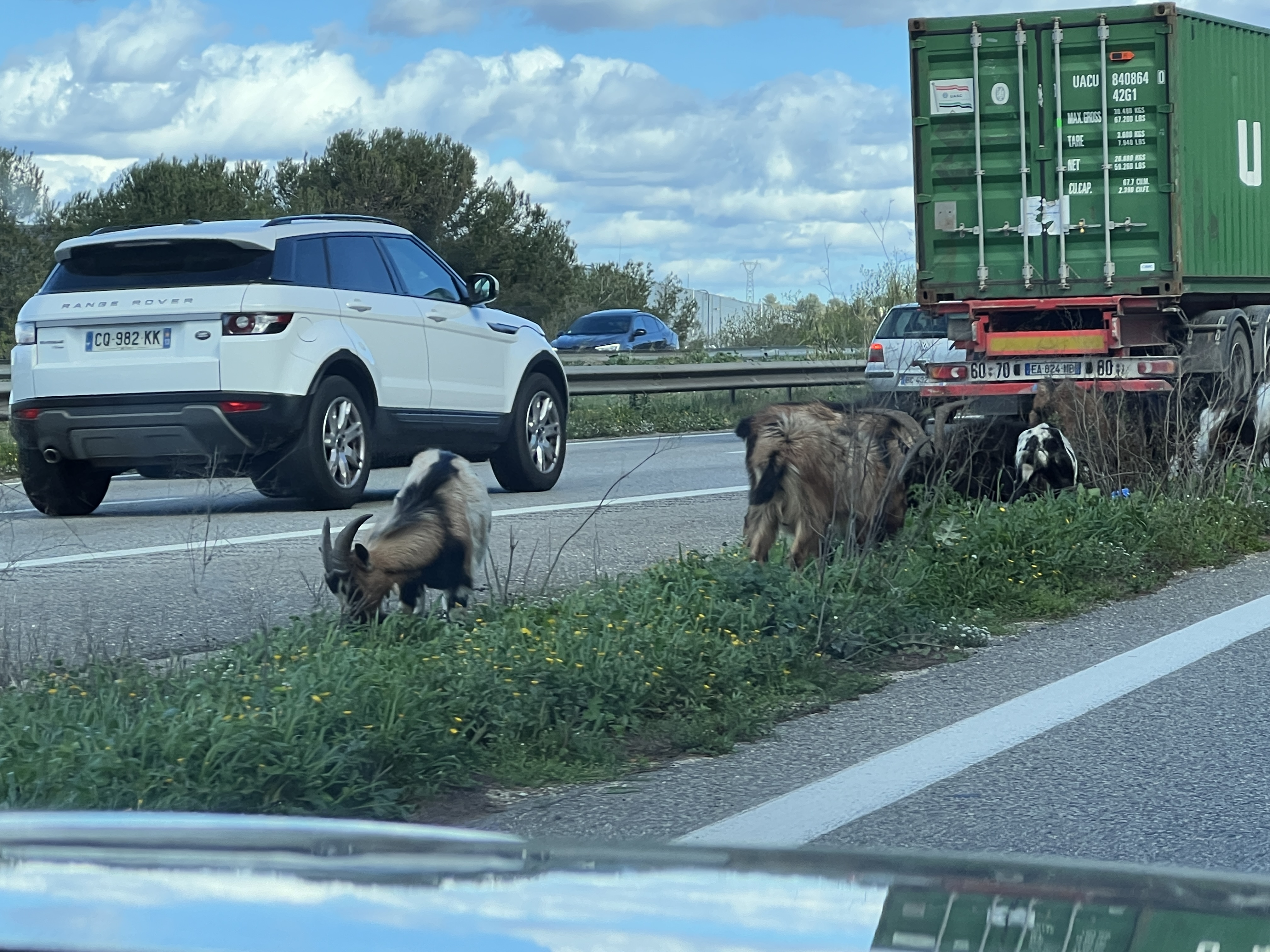 Ici, ce ne sont pas les chevreuils ou les orignaux qui sont dangereux sur les routes ! Nous avons bien ri de cette géante affiche sur l’autoroute proche de chez nous, mais un peu moins lorsque nous en avons rencontré quelques un! C’est parfois énorme, un troupeau de chèvre !