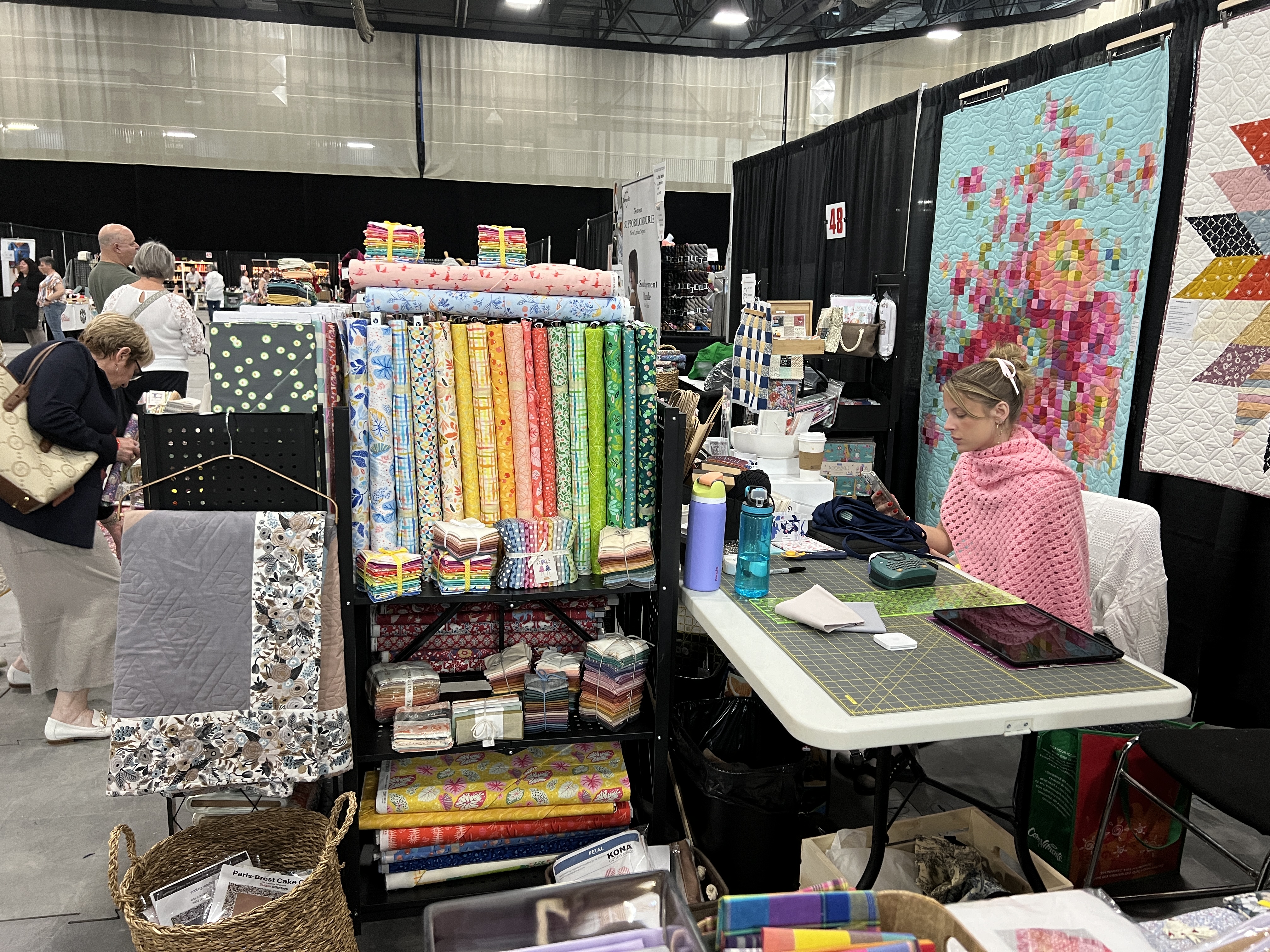 En fait j’ai voulu aider une dame, Danielle Bélanger, qui l’an dernier organisa un premier Salon Aiguilles et Passion (@salon_aiguilles_et_passion) à l’image des salons d’art textile d’Europe, un peu comme ceux axés sur le tricot que nous avons déjà ici en nombre important en Amérique et au Québec. Les premières années d’un salon sont les plus difficiles. Pour rentabiliser, il faut vendre des kiosques et parallèlement faire venir le public, les rencontrer. Sans référence d’années antérieures, tous les marchands restent sur leur garde avant de s’engager avec elle. Son défi est d’inclure le volet couture et tricot ainsi que les arts connexes du textile pour cibler les couturières, les tricoteuses, les tisserandes, les courte-pointières, etc… à venir visiter le salon afin de découvrir des matières, des fournisseurs, des commerces, artisans, qui peuvent assouvir leurs besoins créatifs.
