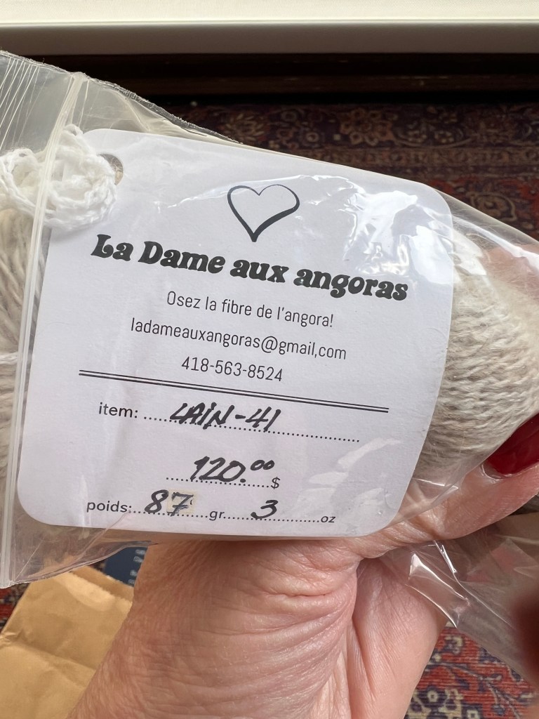 Du fil de 75% lapin angoras et 25% Mérinos et soie 360 verges, 87gr,/3oz de retord 2 brins a 120$ de La Dame aux Angoras