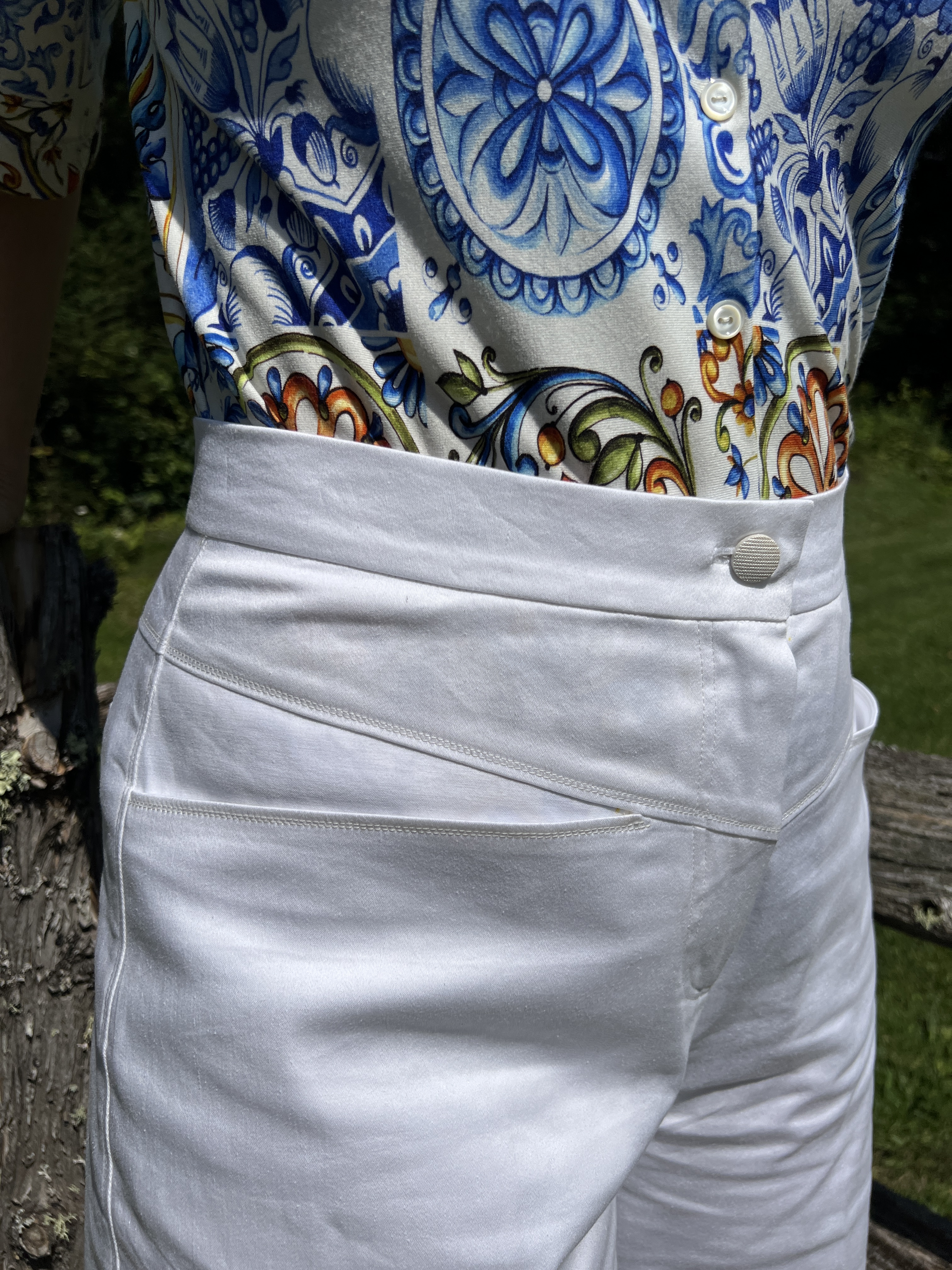 J’avais 2 pantalons été de coupés, j’en ai fini un immédiatement et mis l’autre de côté en tissus plus chaud, afin de passer plus vite à des projets rapides.