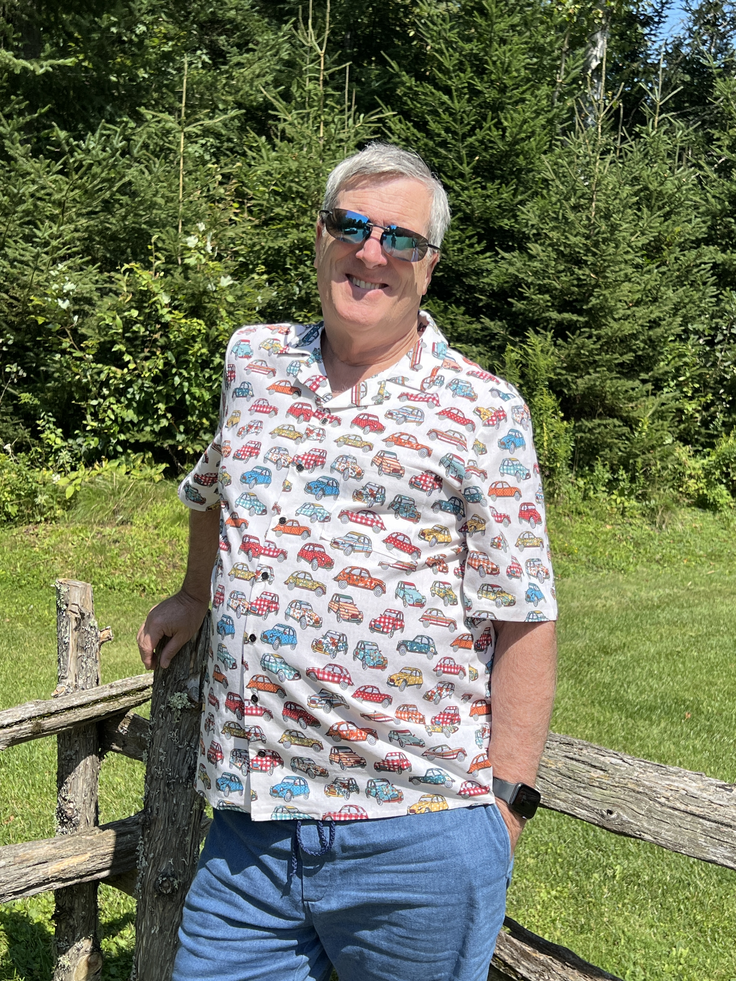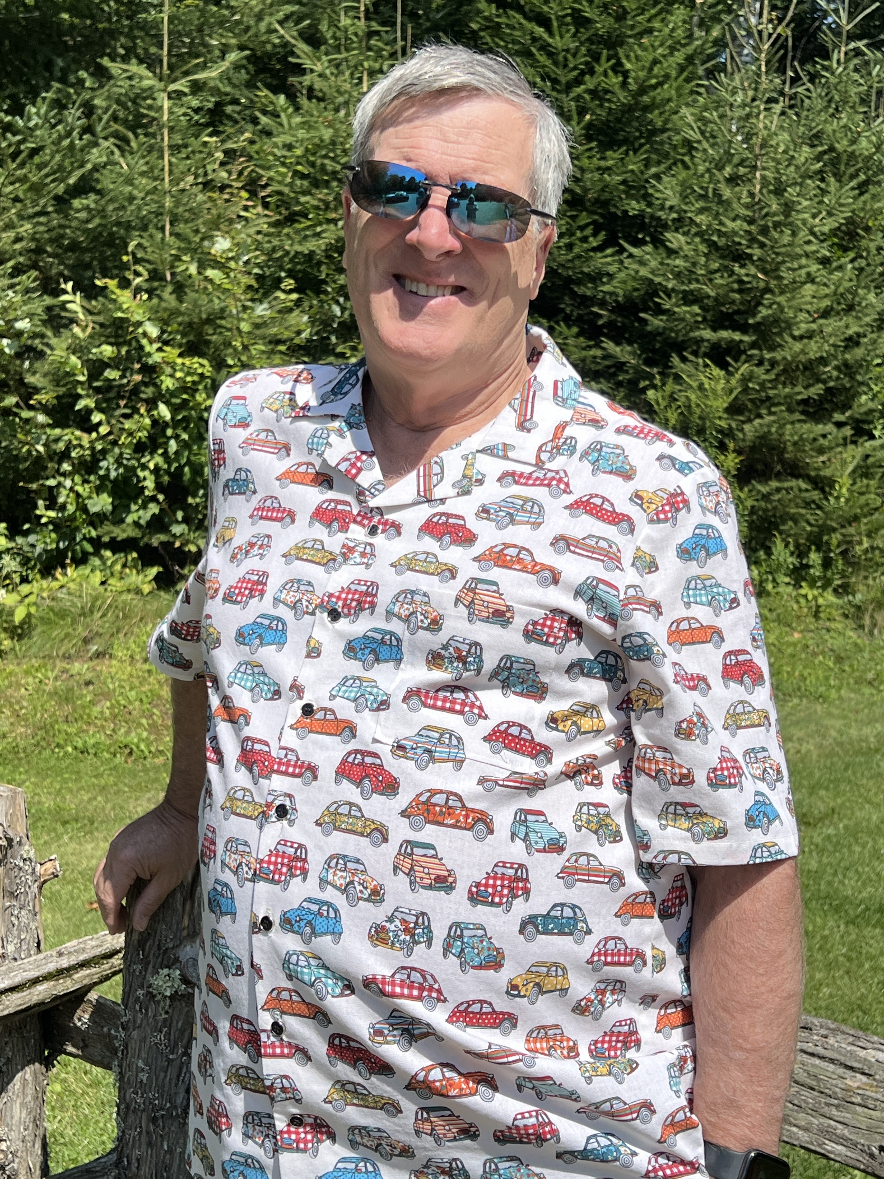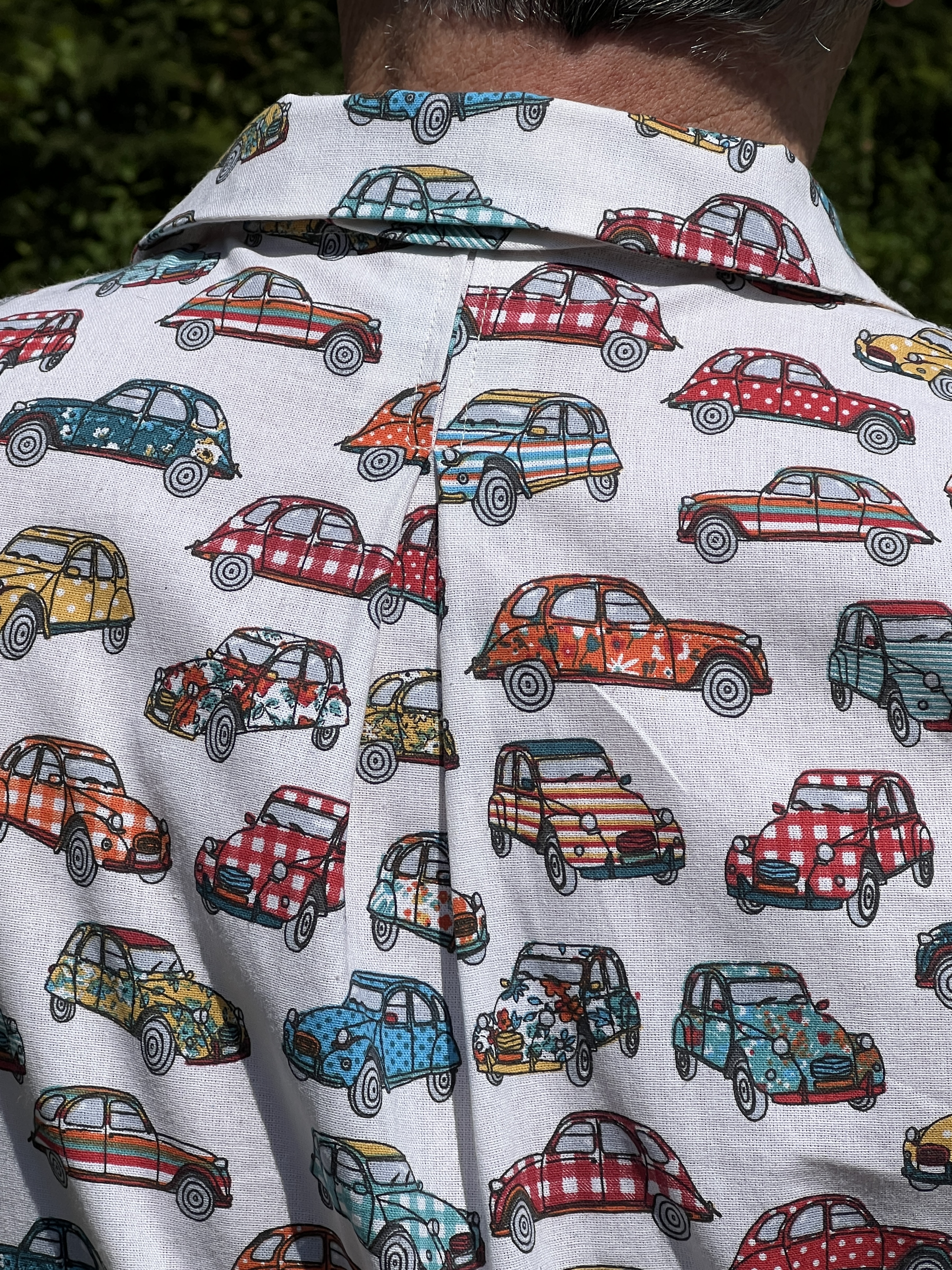 Chemise Clement @fibremood avec un tissu popeline de coton acheté chez L’Agneline @lagneline à Saint-Orens, 2m pour cette jolie chemisette d’été pour Alain au motif qu’il a choisis lui-même et lui rappelle la Côte d’Azur et ses jolies voitures anciennes.