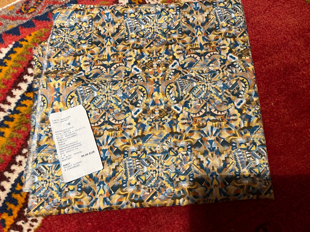 Voici les seuls tissus achetés à part ceux mentionnés plus haut et achetés à la même place depuis mon dernier podcast depuis mon arrivée en Provence!