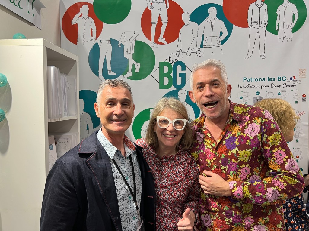 J’ai rencontré au CSF les BG et c’est vrai, ils sont de beaux gosses mais aussi très gentils! Alain portait la dernière chemise que je lui avais faite, ils l’ont remarquée. J’ai été honnête, je n’avais jamais cousu l’un de leurs patrons car, à leur début avec ce premier patron de leur collection, j’avais remarqué une coupe assez française, soit ajustée et cintrée. Pas vraiment le gabarit américain de mon chum! Depuis, j’ai rencontré Olivier et il est très grand pour un Français! Très grand! Et David? A côté d’Olivier, il apparaît son contraire, plus délicat, mais pas plus petit que la moyenne. Ils forment un couple de partenaires parfait pour une compagnie de patrons pour homme!