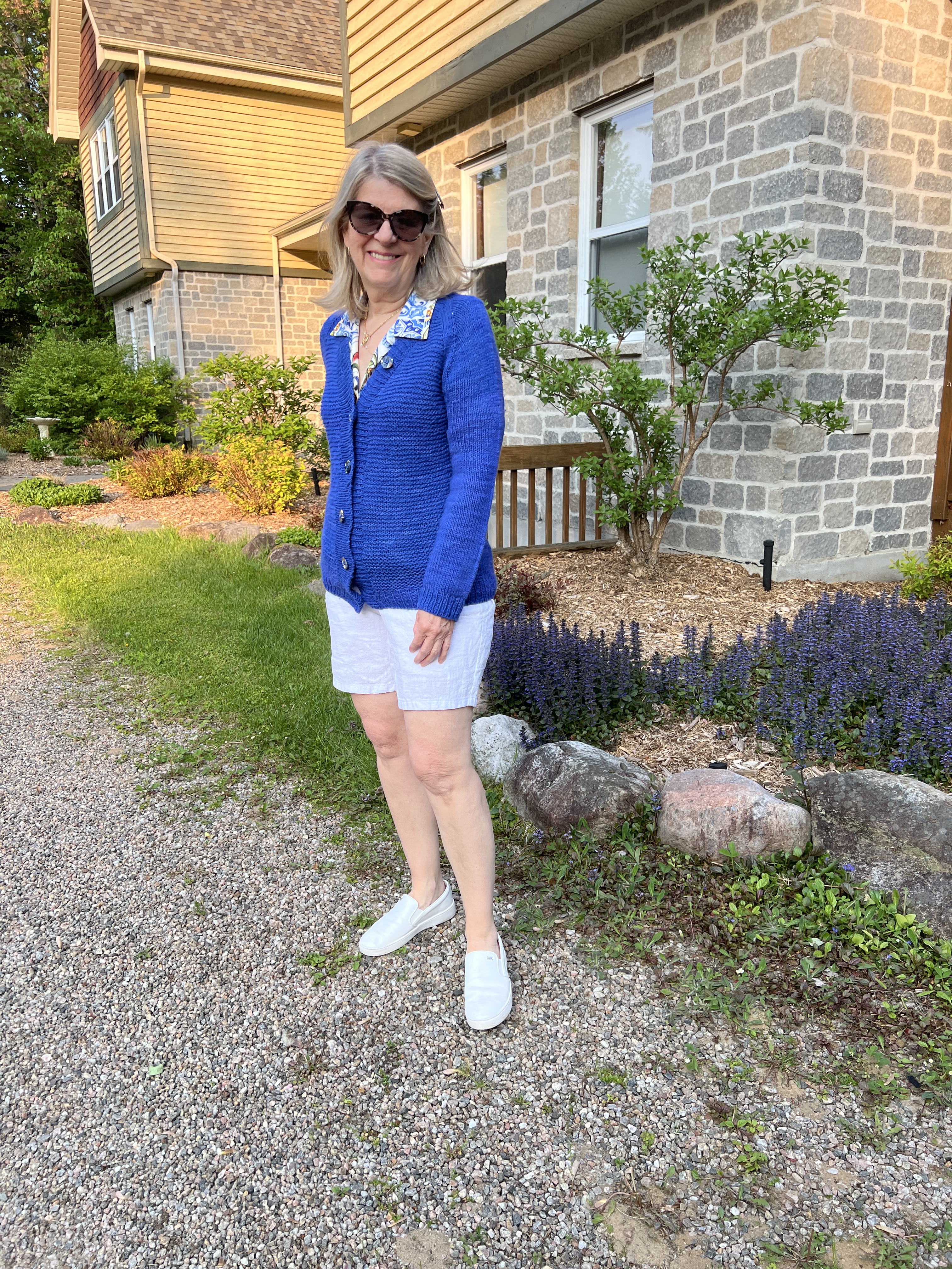 J’ai enfin fini ma veste en tricot Reunion Cardigan en top down de Brienne Moody. Boutons en résine de chez Calissone a Aix en Provence