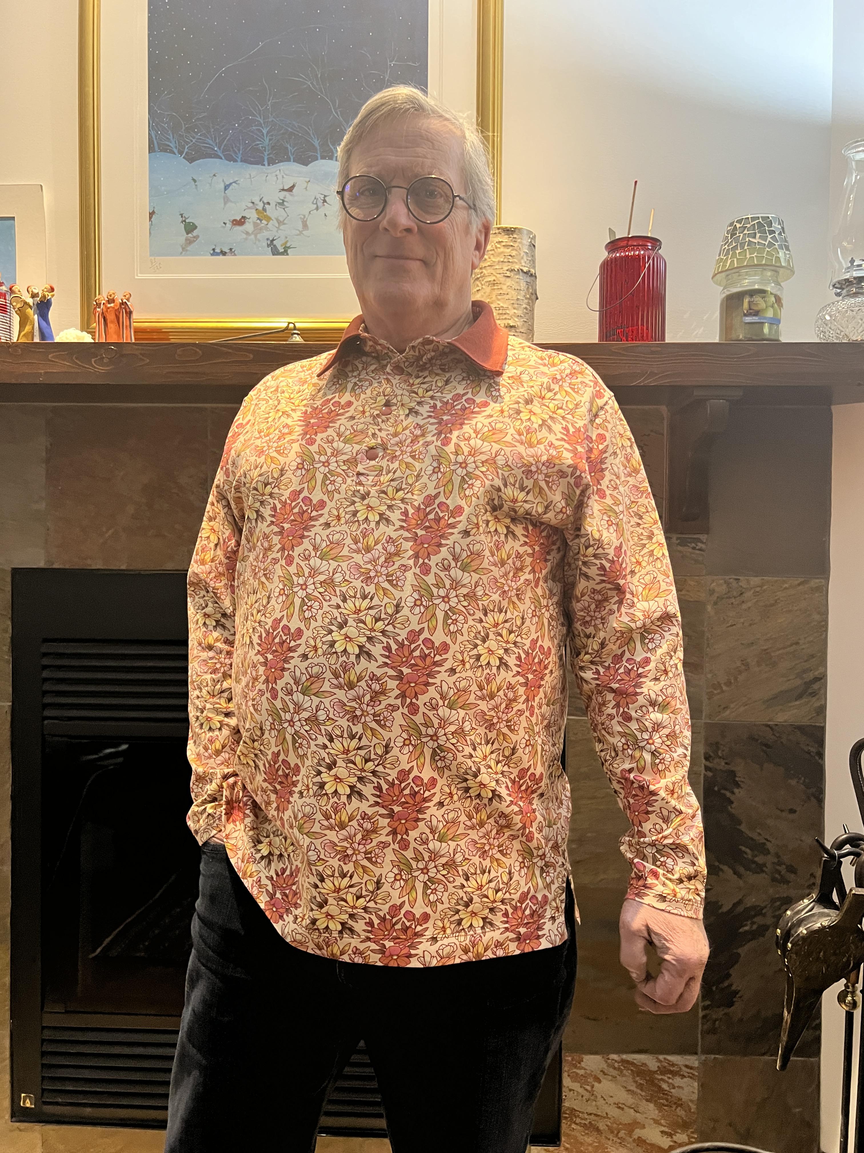 Lors du CSF de l’an dernier, Alain avait choisi un tissu fleuri chez Avril La Rouge pour que je lui fasse un nouveau polo! Je crois que depuis le temps qu’il passe à me suivre et me voir choisir des tissus et de m’accompagner dans de nombreux salons créatifs, il finit par avoir la piqûre du style, des tendances et du choix que nous apporte cette passion.