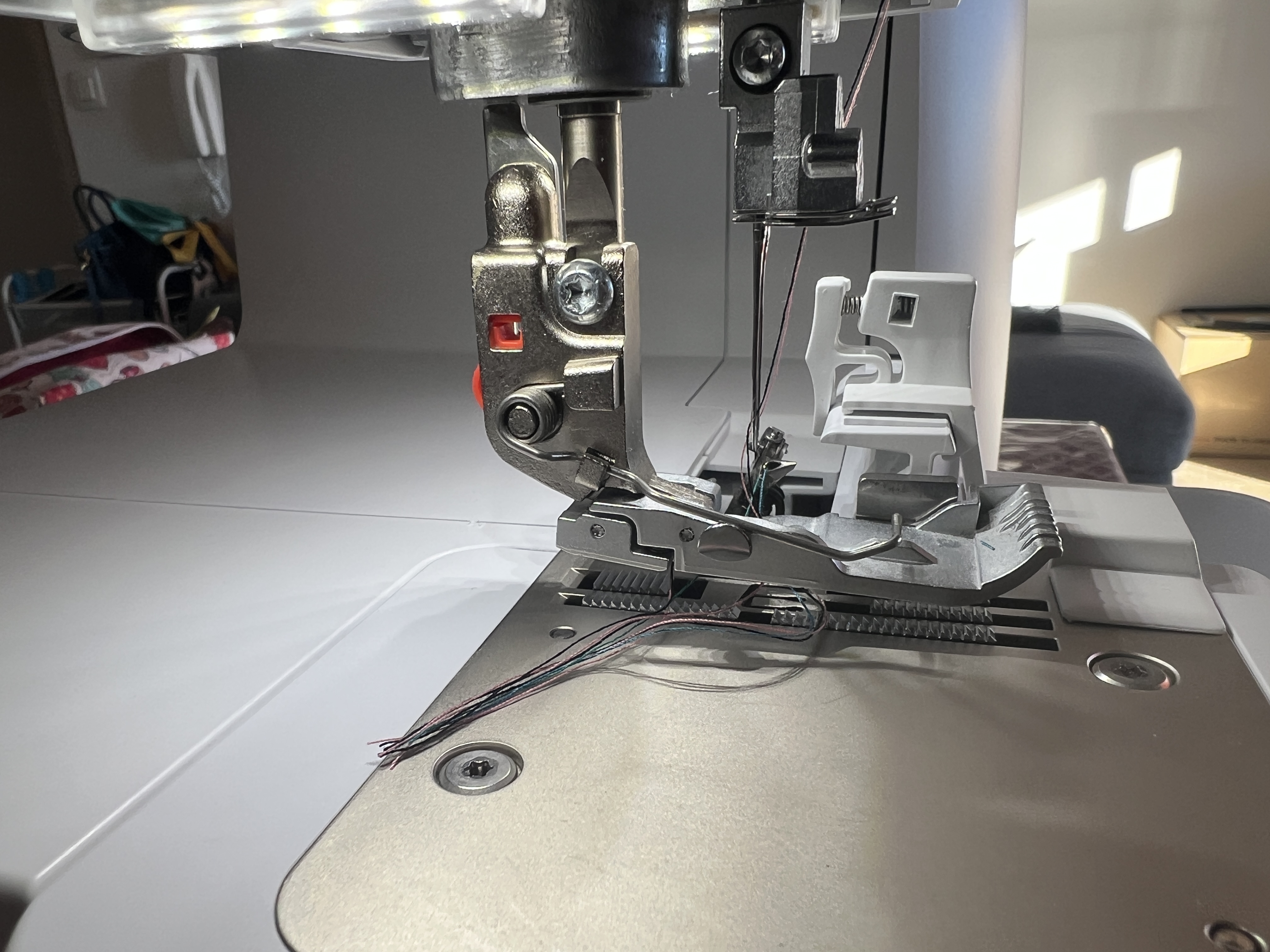Le principe du pied presseur pivotant de droite à gauche est impressionnant et très utile pour l’enfilage des aiguilles,