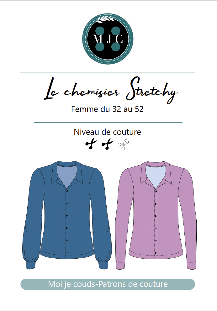 Pourquoi, j’ai déjà dit que ce sont des pépites les patrons de cette marque ? Car, j’ai aussi coupé, comme moi, leur patron de chemise en tissu strech mais pour homme ! Comme le chemisier Le Stretchy » que j’ai adoré pour femmes, elle en a sorti un pour homme mais à manches courtes. Je l’ai donc modifié pour lui faire mais en manches longues et étant un peu juste dans le tissu, j’ai simplement rajouté des bracelets de manches très très simples soit une bande 4cm et une couture milieu dos car impossible de mettre le morceau de patron au pli.