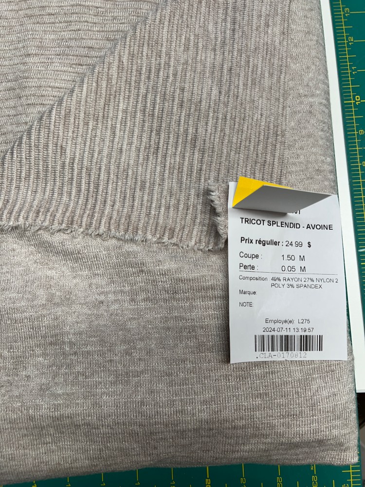 Je crois que j’ai ce patron depuis 2016 et le tissu aussi acheté à la défunte boutique de St-Jérôme, La Grange du Tissu. En fait, à ce moment-là, la couture de polo n’était pas à la mode et je crois avoir acheté ce tissu pour moins de 6$ le mètre au sous-sol et le propriétaire est parti en courant me chercher un super trésor, le col préformé en tricot de côte, qui allait avec! Ce gentil monsieur (RIP) allait faire le tour des manufacturiers et grossistes en tissus chercher ses trésors et nous les revendait à bon prix, et il connaissait son stock même s’il y en avait jusqu’au plafond!