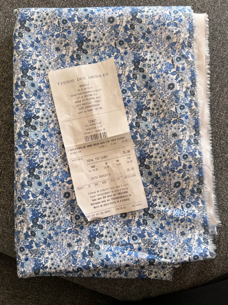 Voici les seuls tissus achetés à part ceux mentionnés plus haut et achetés à la même place depuis mon dernier podcast depuis mon arrivée en Provence!