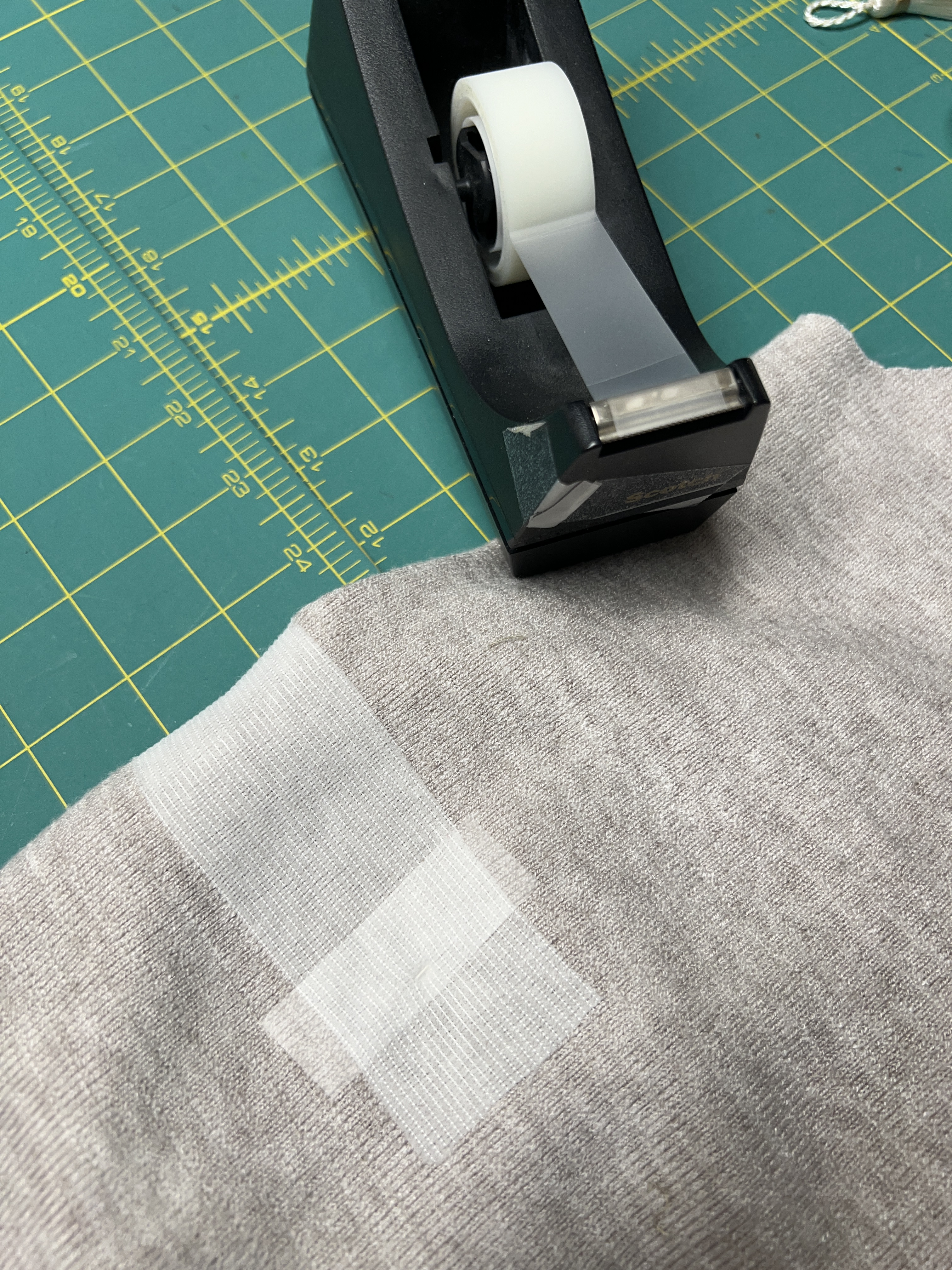 Par contre, lire les instructions est difficile car on doit sans arrêt naviguer entre le texte sur la première page et les photos numérotées sur une 2e page. Ces photos sont très petites et les instructions minimalistes. Par contre, cette créatrice donne toujours de bons trucs pour nous faciliter la vie. Mettre un morceau de papier collant (Magic scotch tape, celui un peu blanc) sur le bord du tissu avant de couper le petit triangle de la patte de boutonnage avant est franchement génial. J’ai ressorti ma distributrice de papier collant à côté de ma table de travail car j’ai déjà trouvé plusieurs autres utilités de ce petit truc afin d’éviter l’effilochement ou l’étirement du tissu en le cousant. Cela le stabilise temporairement et s’enlève aisément par la suite.