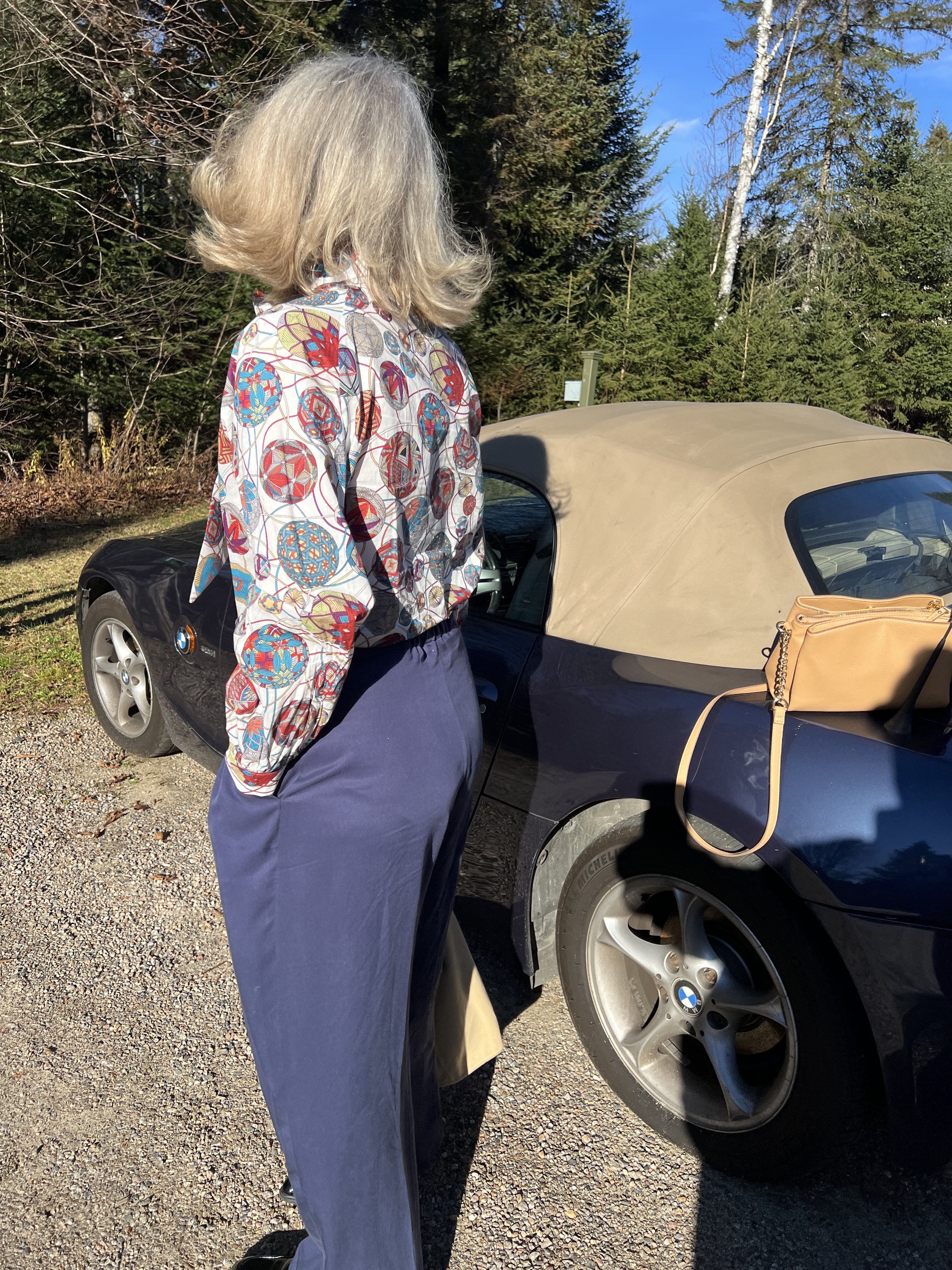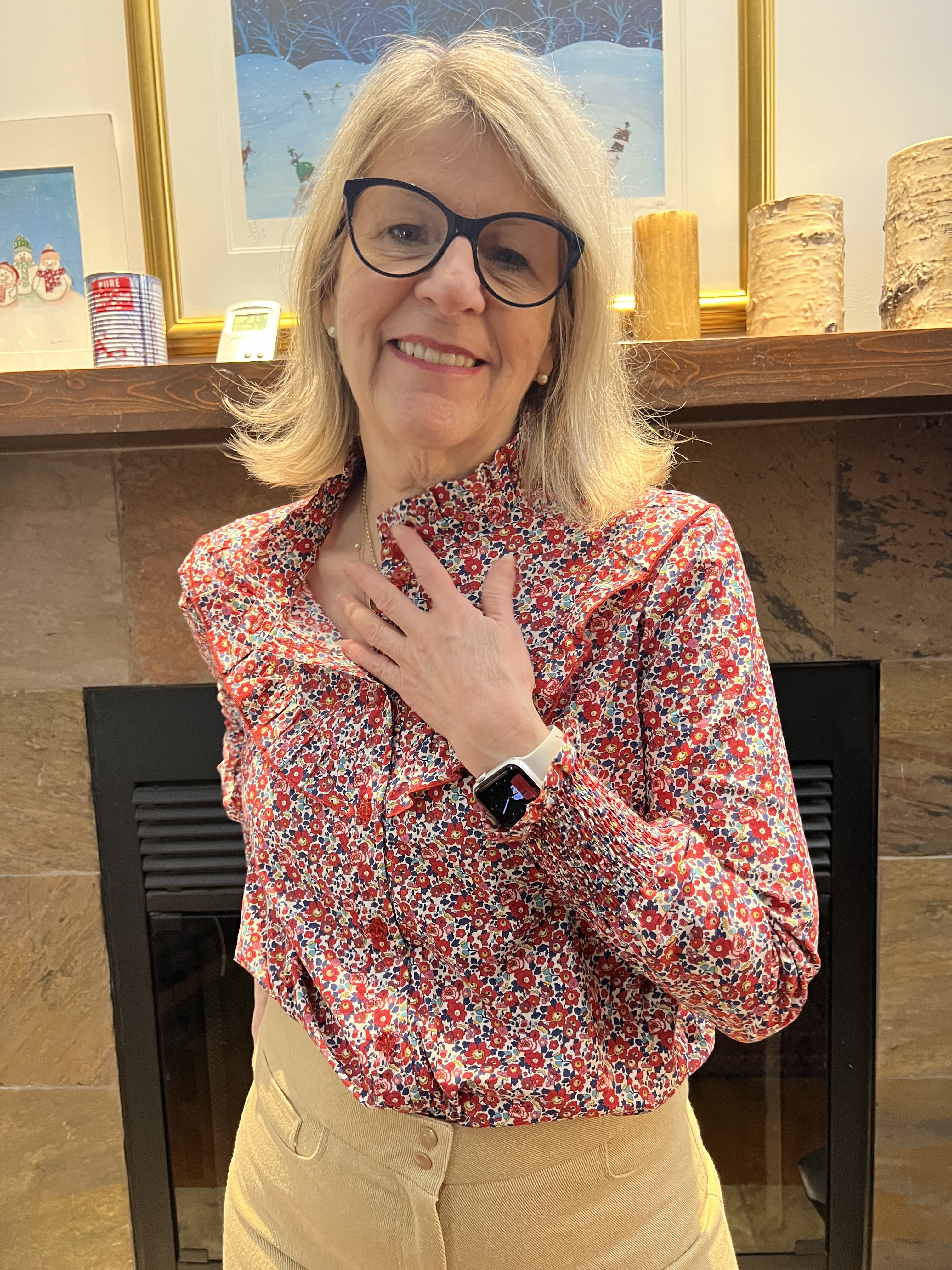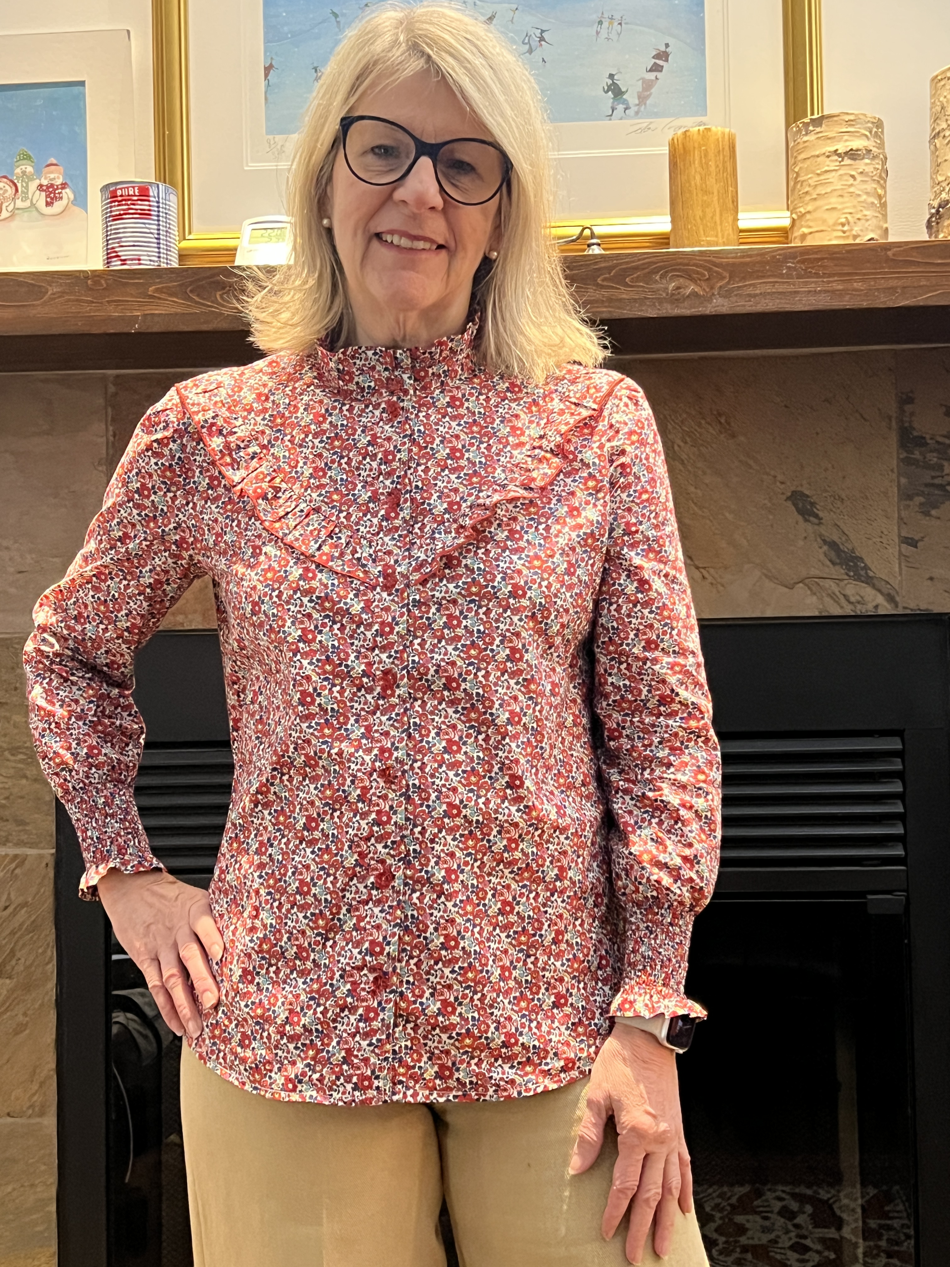 Encore dans un tissu style Liberty acheté en même temps que les autres, cette blouse j’en rêvais depuis plusieurs années grâce à celles publiées de Christine de « Petit Bonheur dans mon atelier », qui en présente plusieurs dans son blogue.