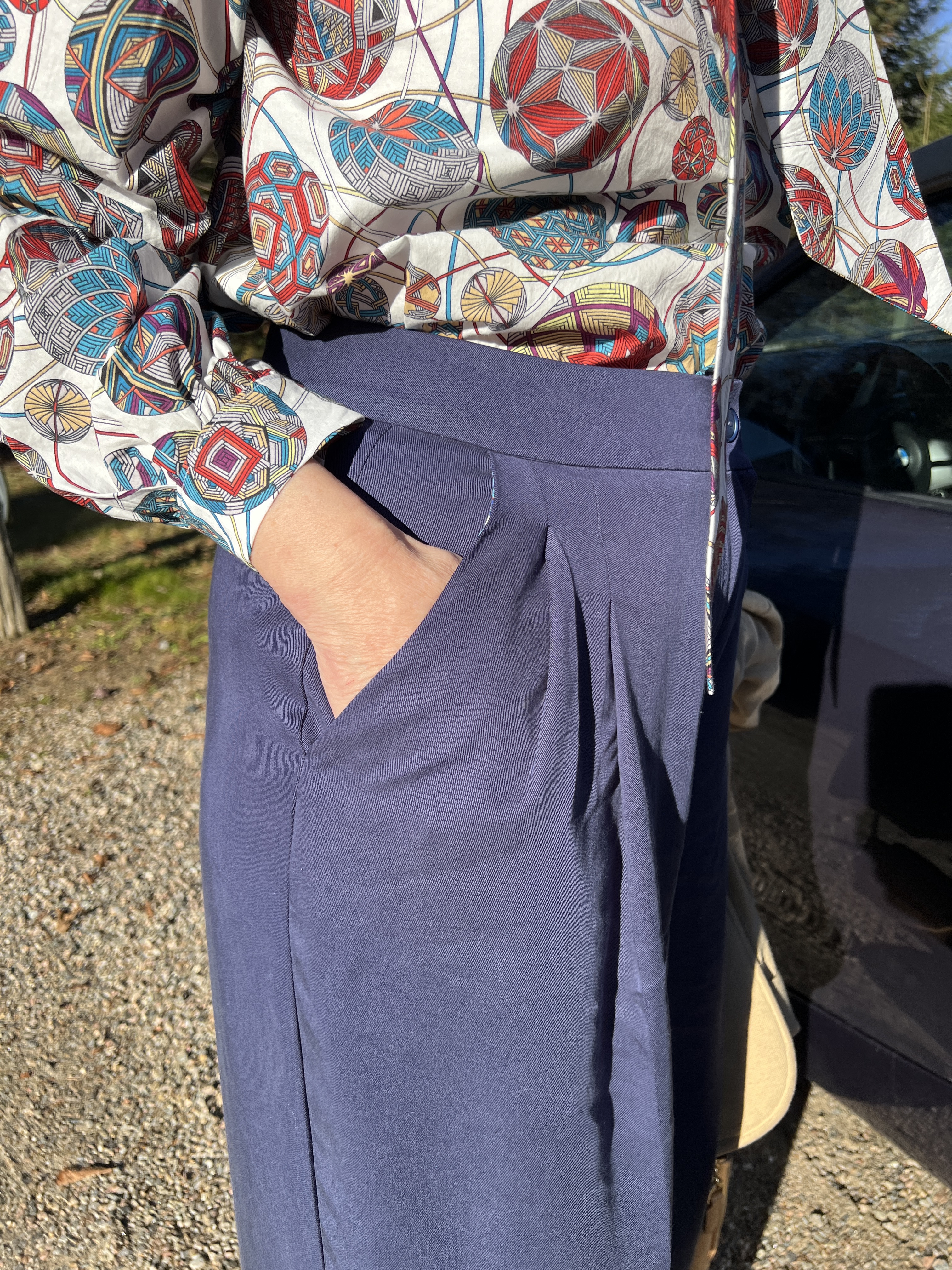 Cela fait plus joli car le reste de la ceinture est normal et c’est plus seyant ainsi pour un pantalon propre. Le tissu de sergé de « Tencel » est plus mince que je m’y attendais, mais rend le tombé du pantalon parfait avec les plis et les poches italiennes. Mais disons que cela sera mes pantalons de mi-saison.