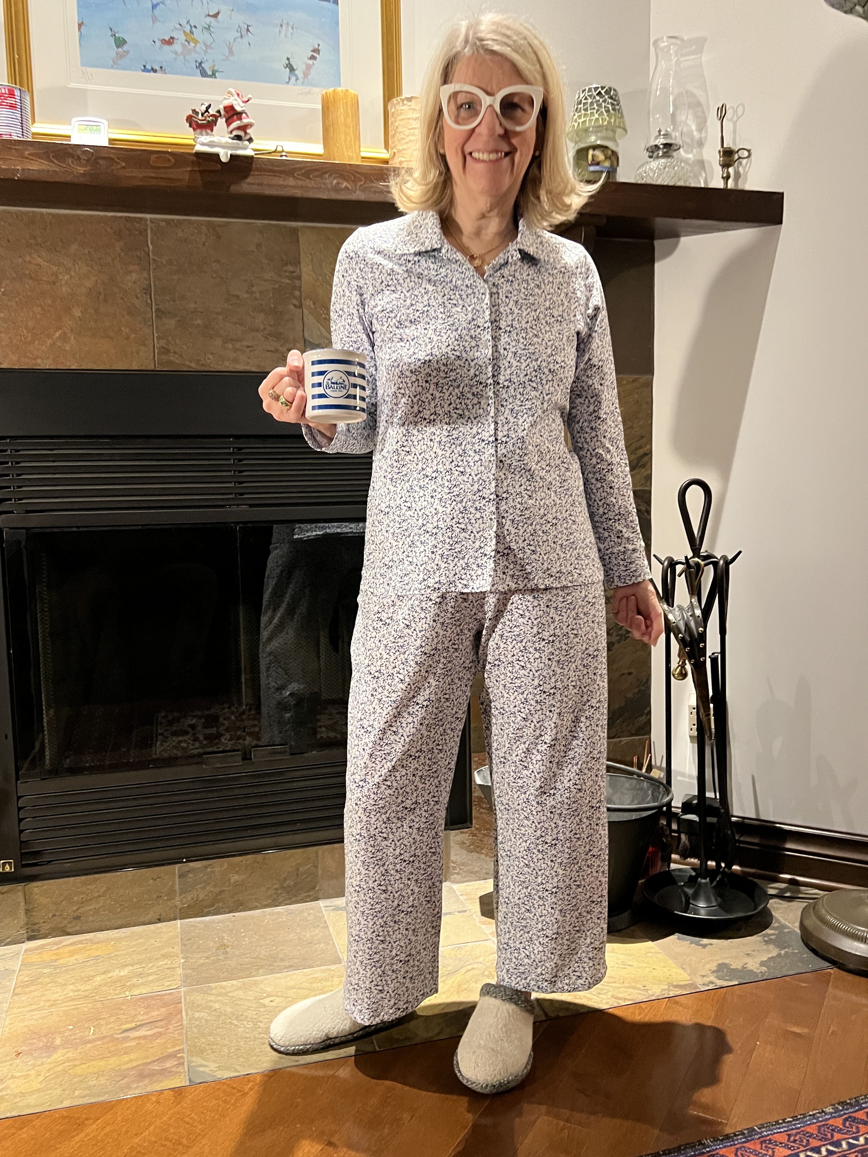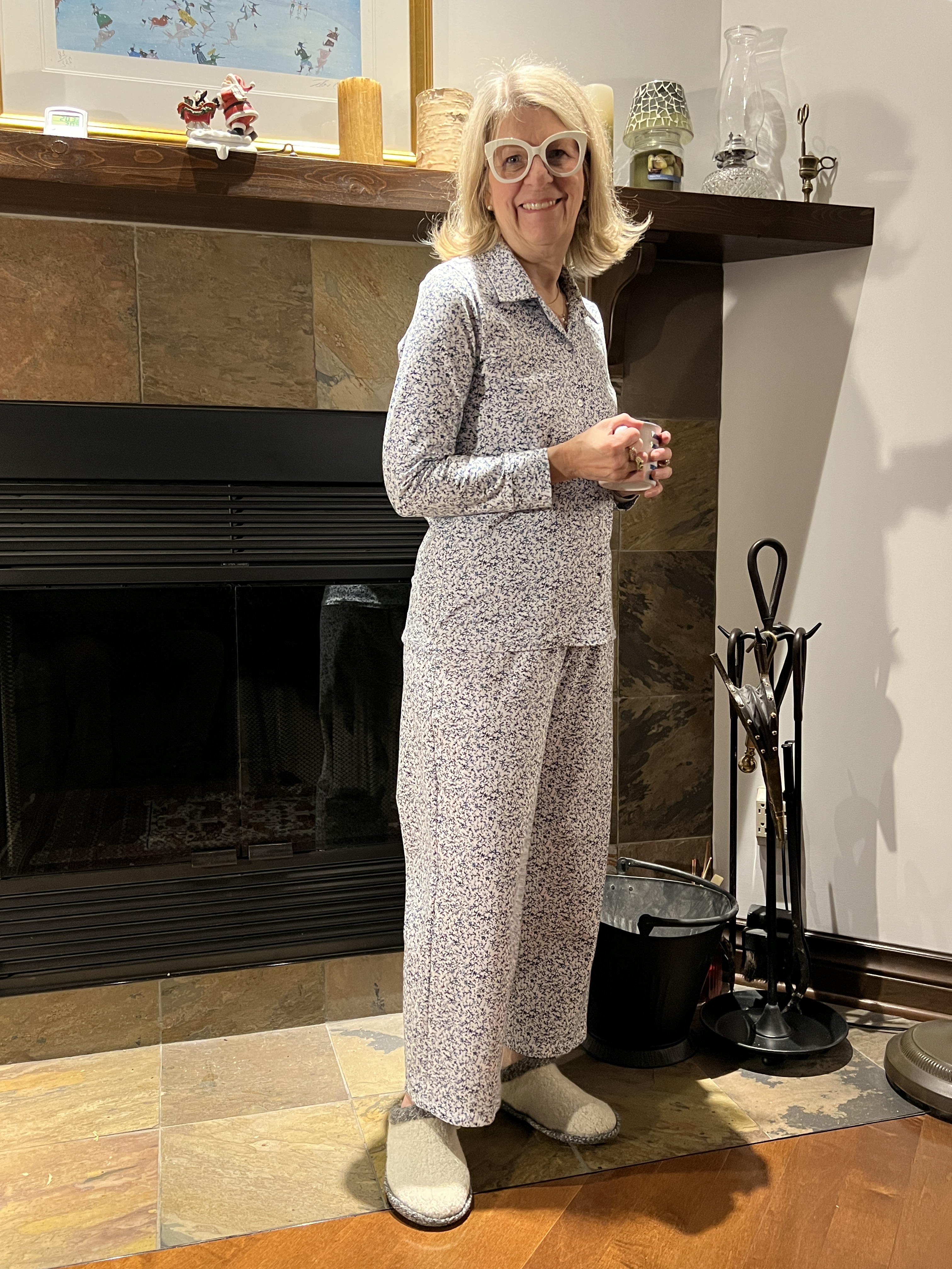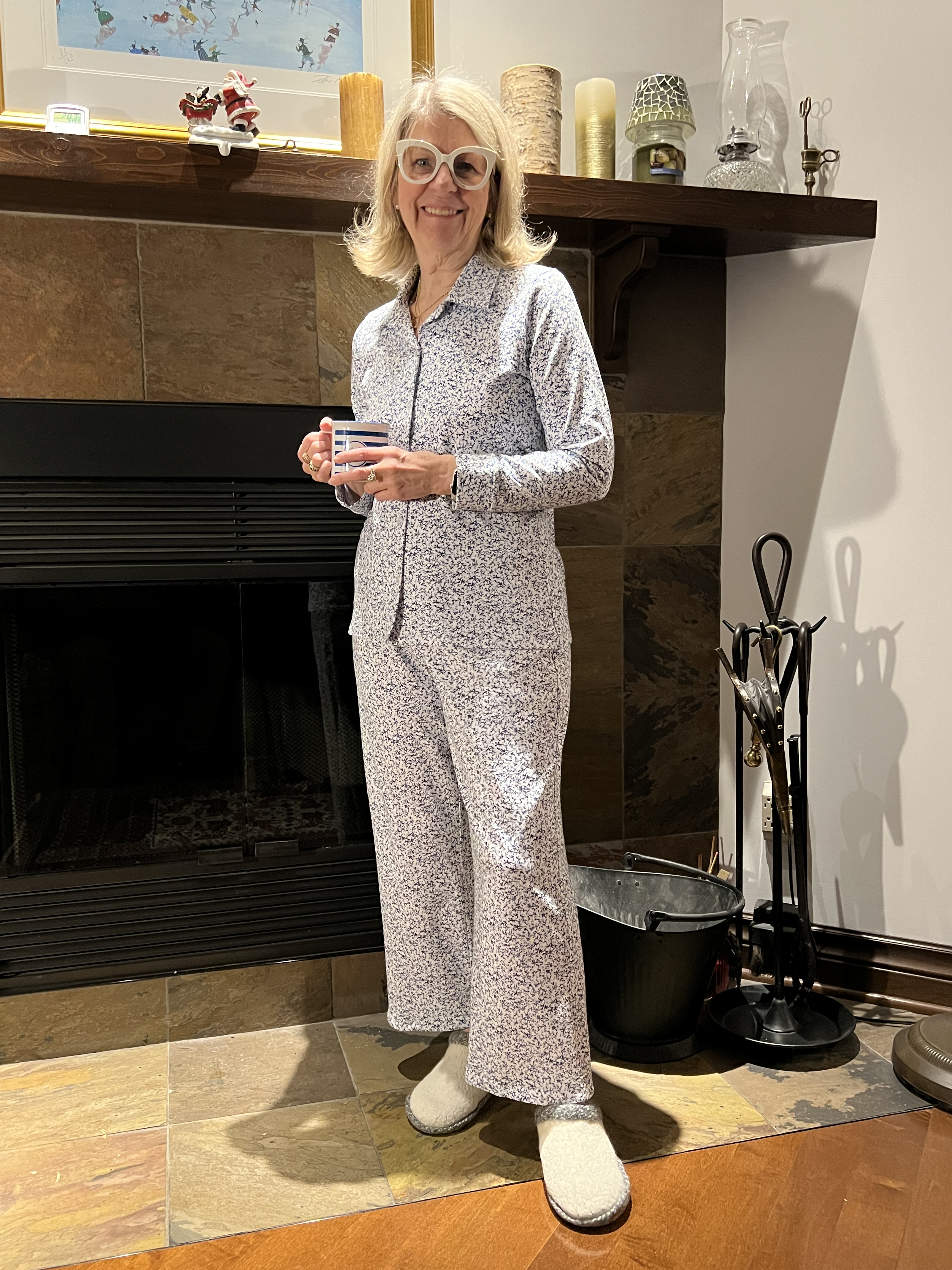 Voilà, j’admets que j’ai toujours été très performante face à la pression et au stress! Incapable de coudre autant que je voulais tout l’été, me voilà à vous présenter avant mon départ des tricots presque finis, une broderie terminée, 3 chemises en style liberty ainsi qu’une jolie blouse Florette en balle de laine, 2 pantalons, un chandail chaud et un autre pyjama chic! Ouf! Sortez votre café, thé ou verre… heu, non, plutôt un bouteille de vin! 🙃