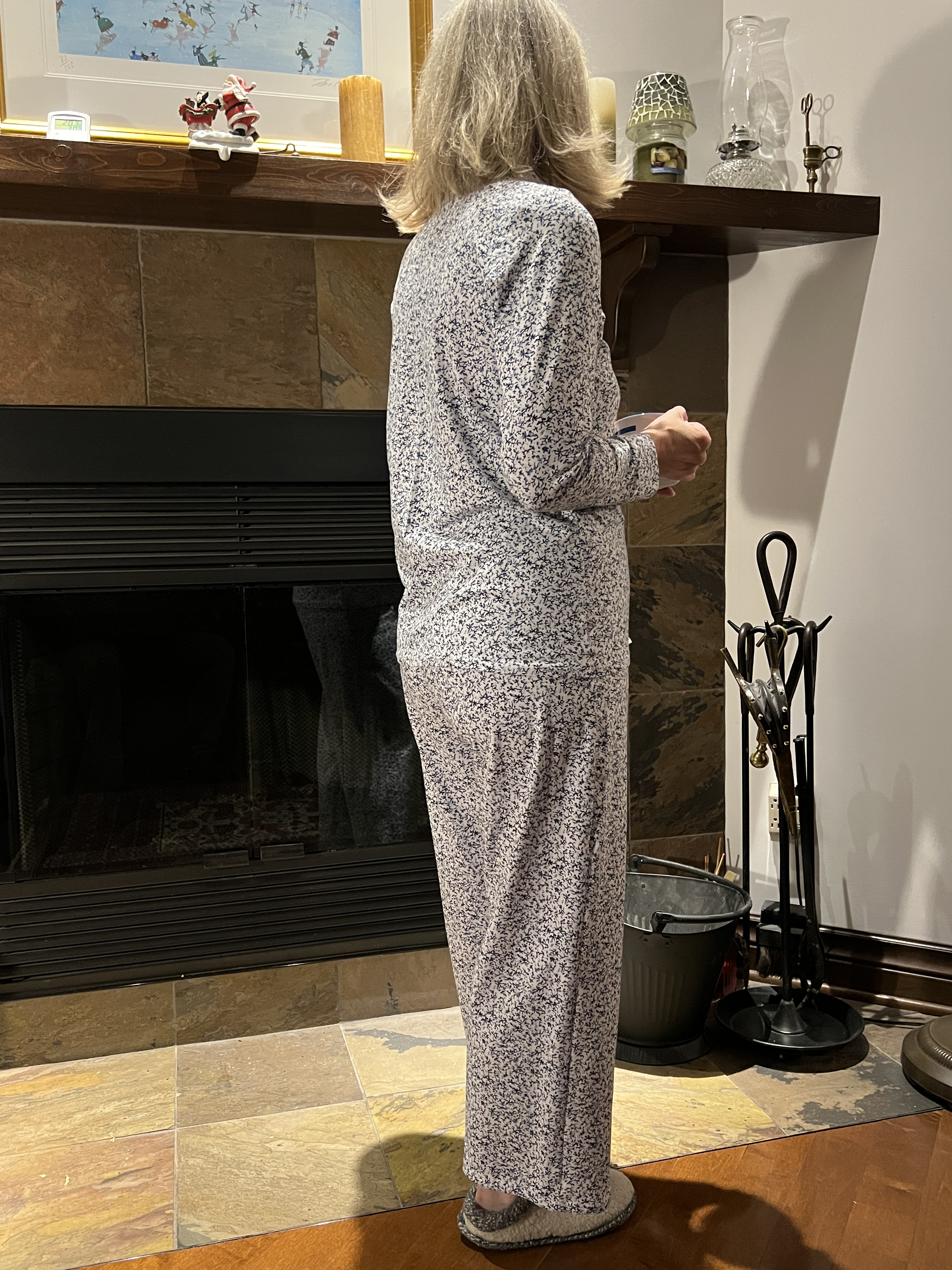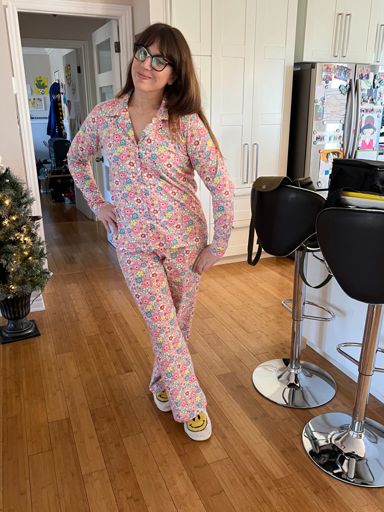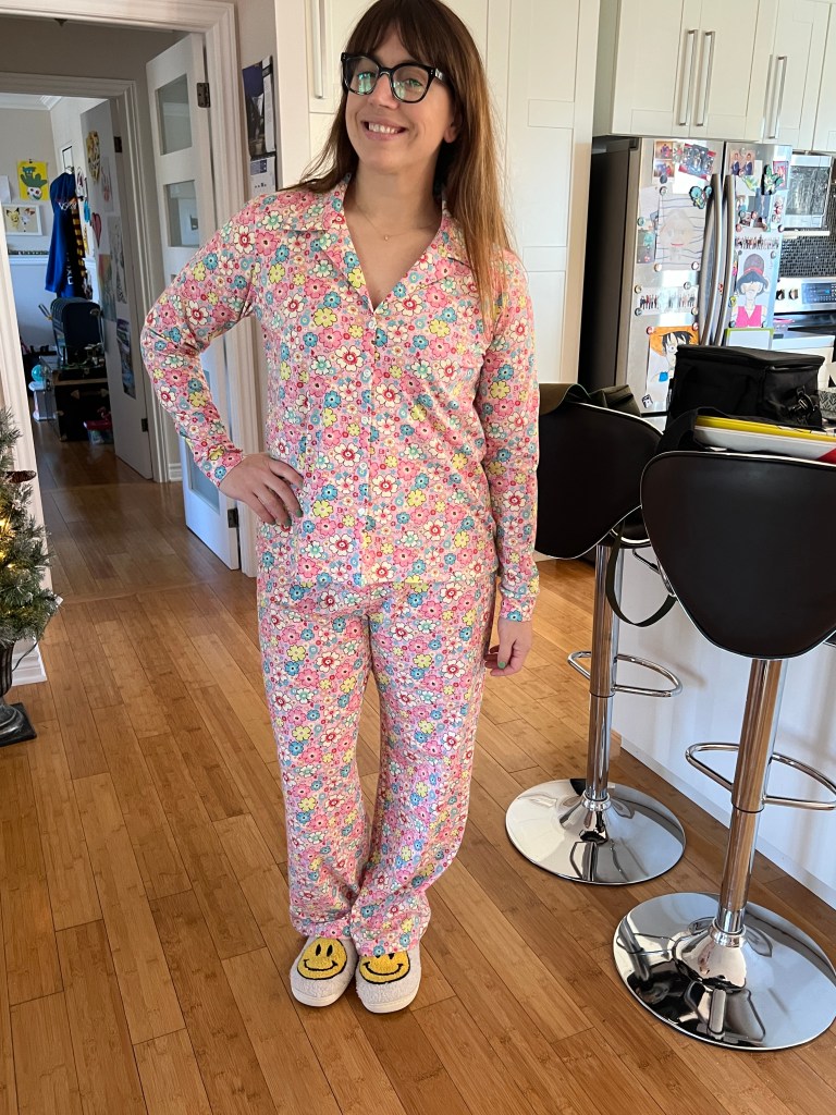 Je l’aime autant et je n’ai fait aucun changement supplémentaire suite aux modifications réussies sur le dernier cousu, à part de remonter les boutons pour une encolure plus couvrante et rallonger le pantalon au maximum. Les 2 ensembles sont déjà dans ma valise!