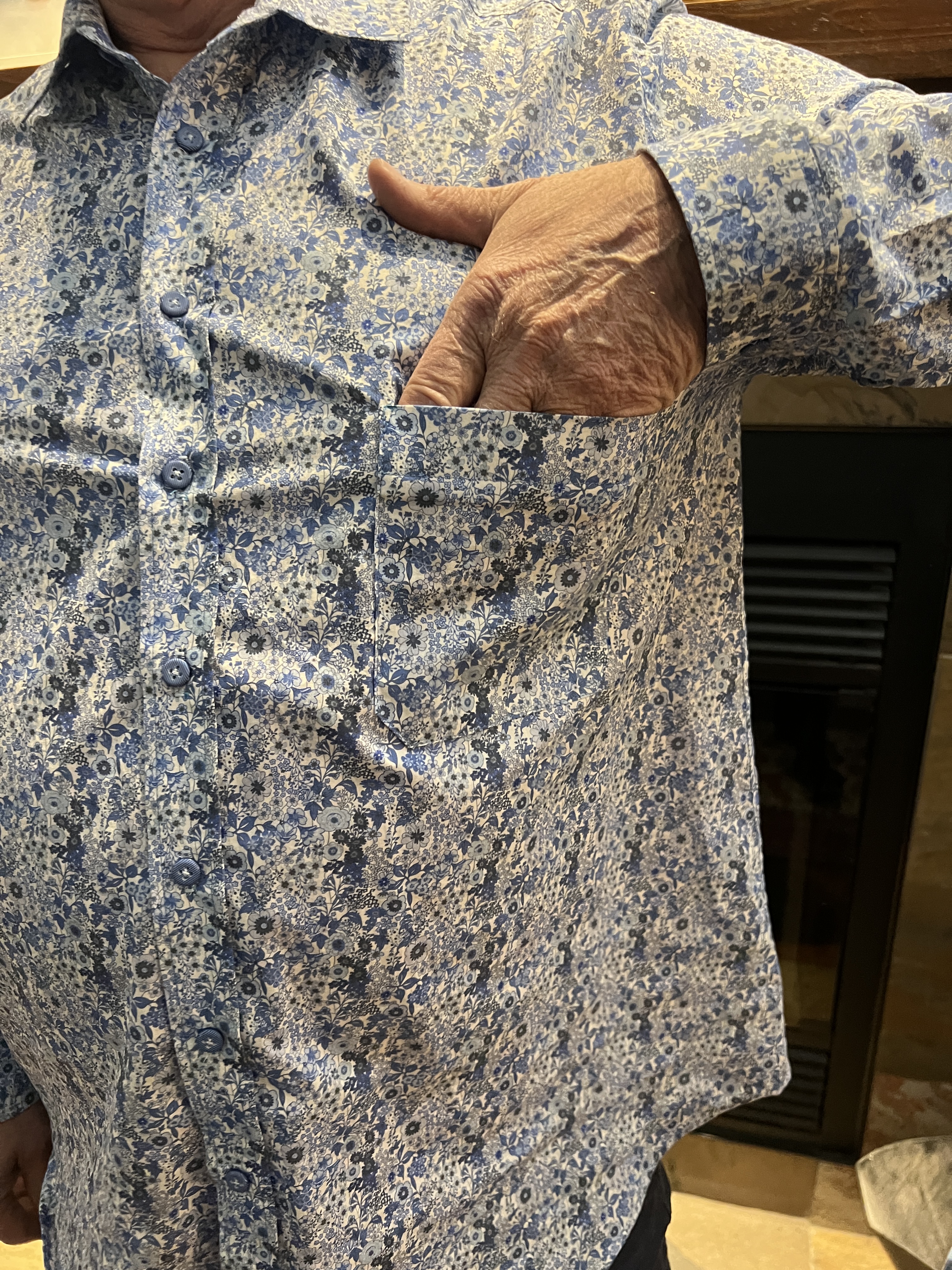 La chemise Fairfield Button Up shirt par les Patrons Thread Theory en tissu voile mince de coton fleuri style liberty choisi par mon homme! Gr 2XL avec la nouvelle gamme de taille forte pour homme de cette patroniste.