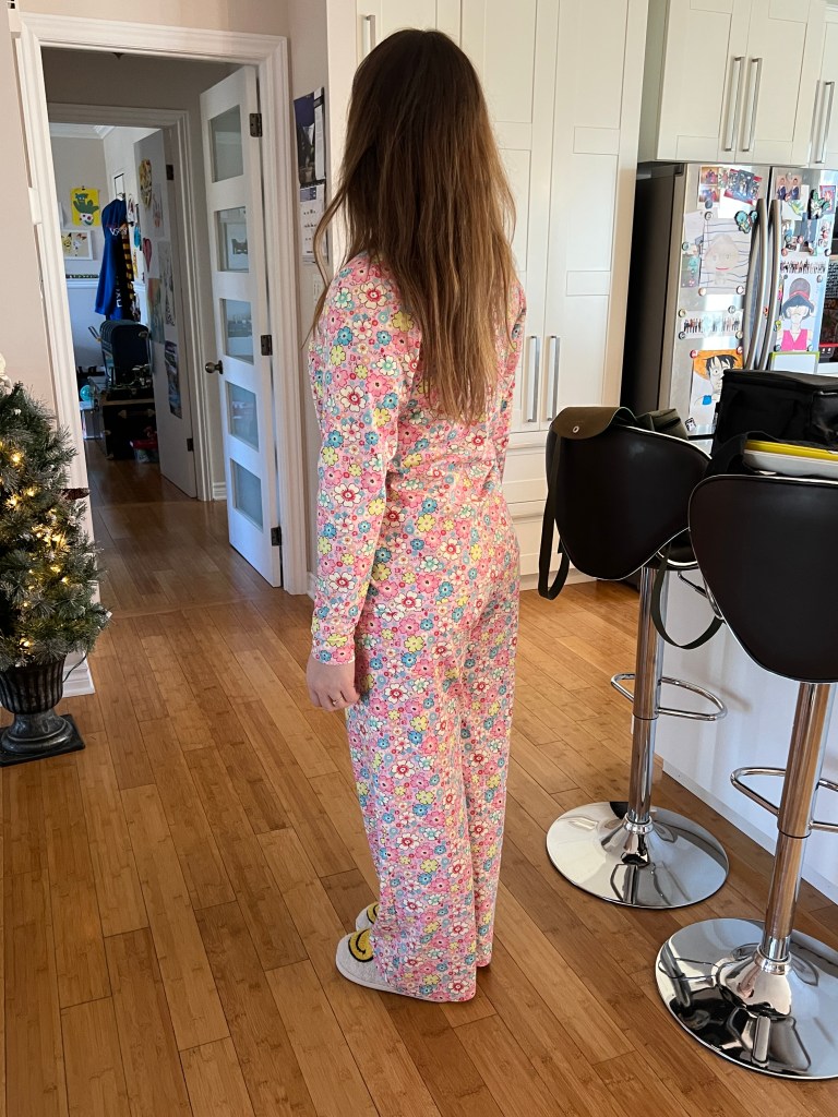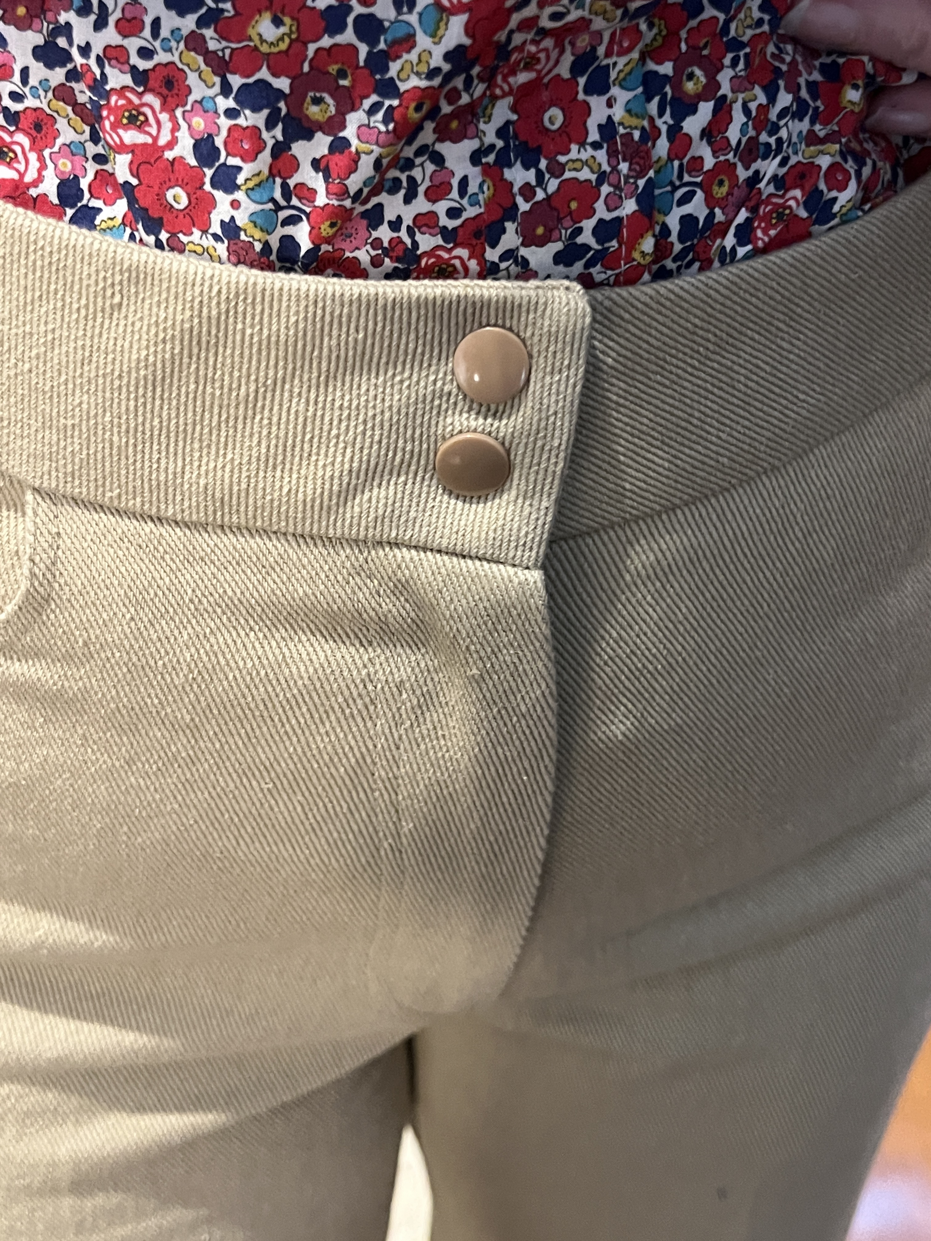 Le tissu a une marque (ligne) de décoloration en plein centre du bas des jambes, je ne suis vraiment pas chanceuse avec les tissus de ce magasin. Je les ai avertis. Ils sont portables, mais c’est encore assez décevant.