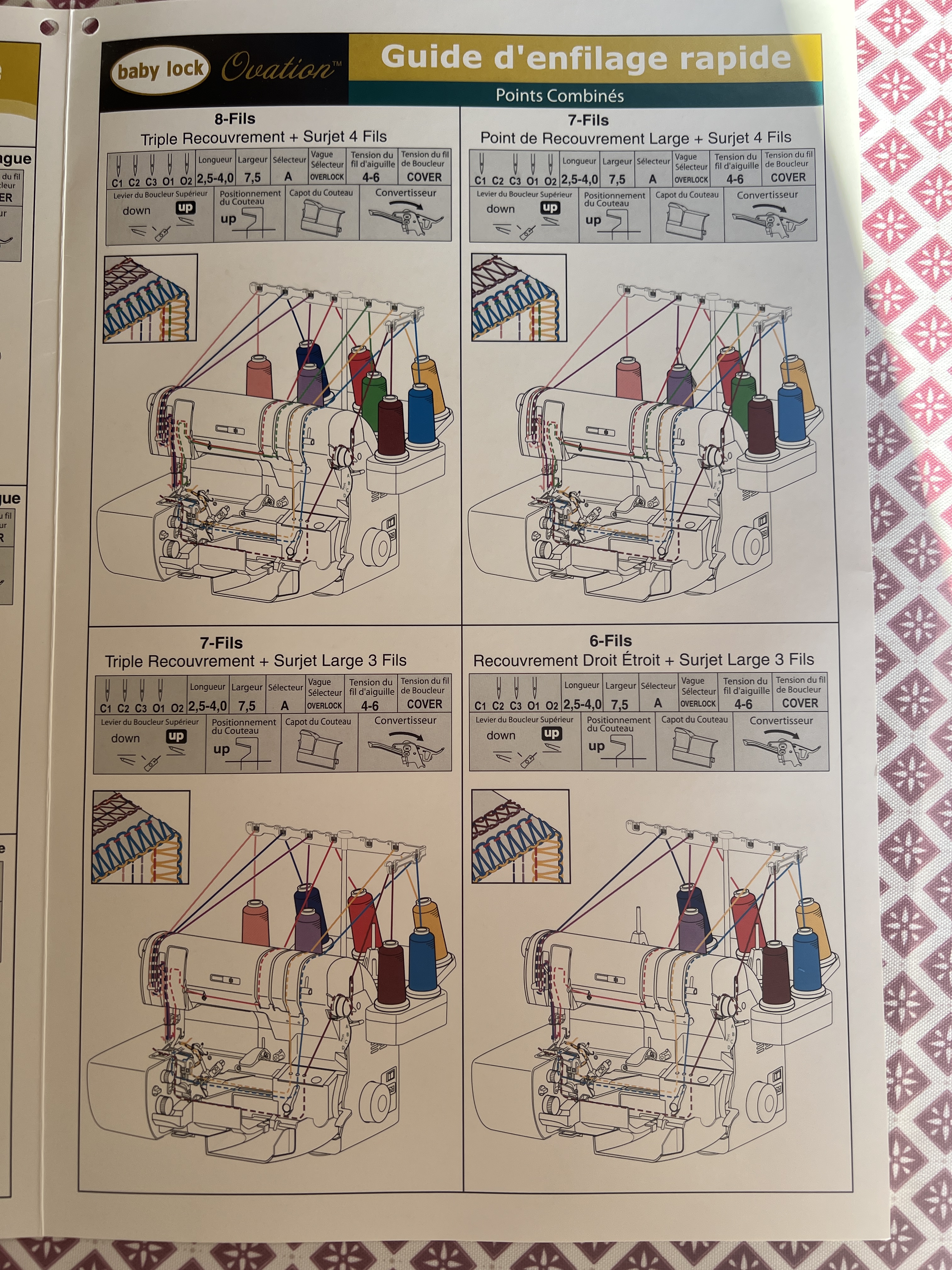 Nous avons tous commencé à lire notre livre d’instructions pour amadouer notre machine en priorité, et on en fait une lecture sélective afin de répondre aux besoins premiers : « savoir comment elle fonctionne cette machine »! Donc, on passe vite les infos plus avancées ou techniques qu’on oublie avec le livre bien rangé dans le fond du tiroir. Le ressortir, croyez-moi, avec une plus grande expérience de votre machine et aussi l’expérience acquise avec vos confections que vous avez faites depuis, vous réaliserez vite tout le potentiel que vous manquez de cette machine!