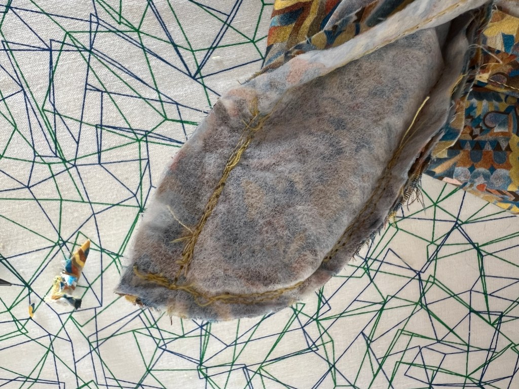 Pour la confection de ce sac, j’ai placé l’Amérique, mon chez-moi, sur un côté et le continent africain de l’autre car sur la carte, ils étaient assez proportionnés pour entrer au complet sur mon devant et dos. Il me reste un grand morceau avec l’Europe et l’Asie, dont j’ai un autre projet en tête!
